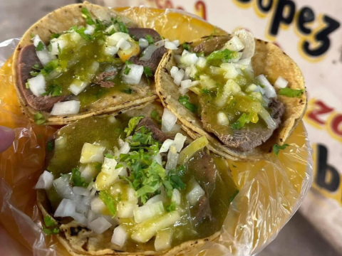¡Suave, jugoso y lleno de sabor! Preparado con Cabeza de res al vapor, Cebolla, Cilantro, Pepino y nuestra cebolla curtida con chile habanero.