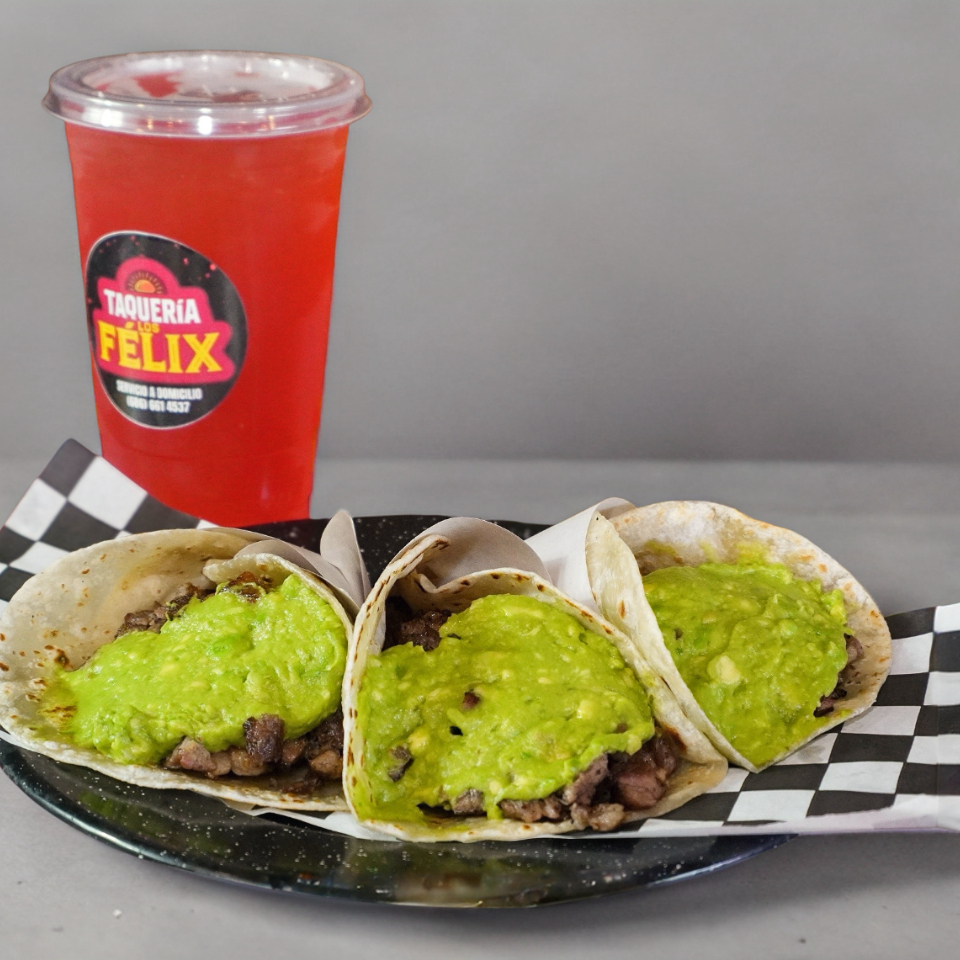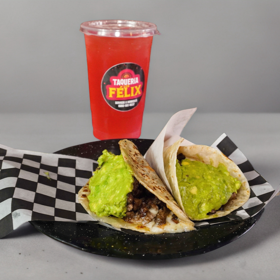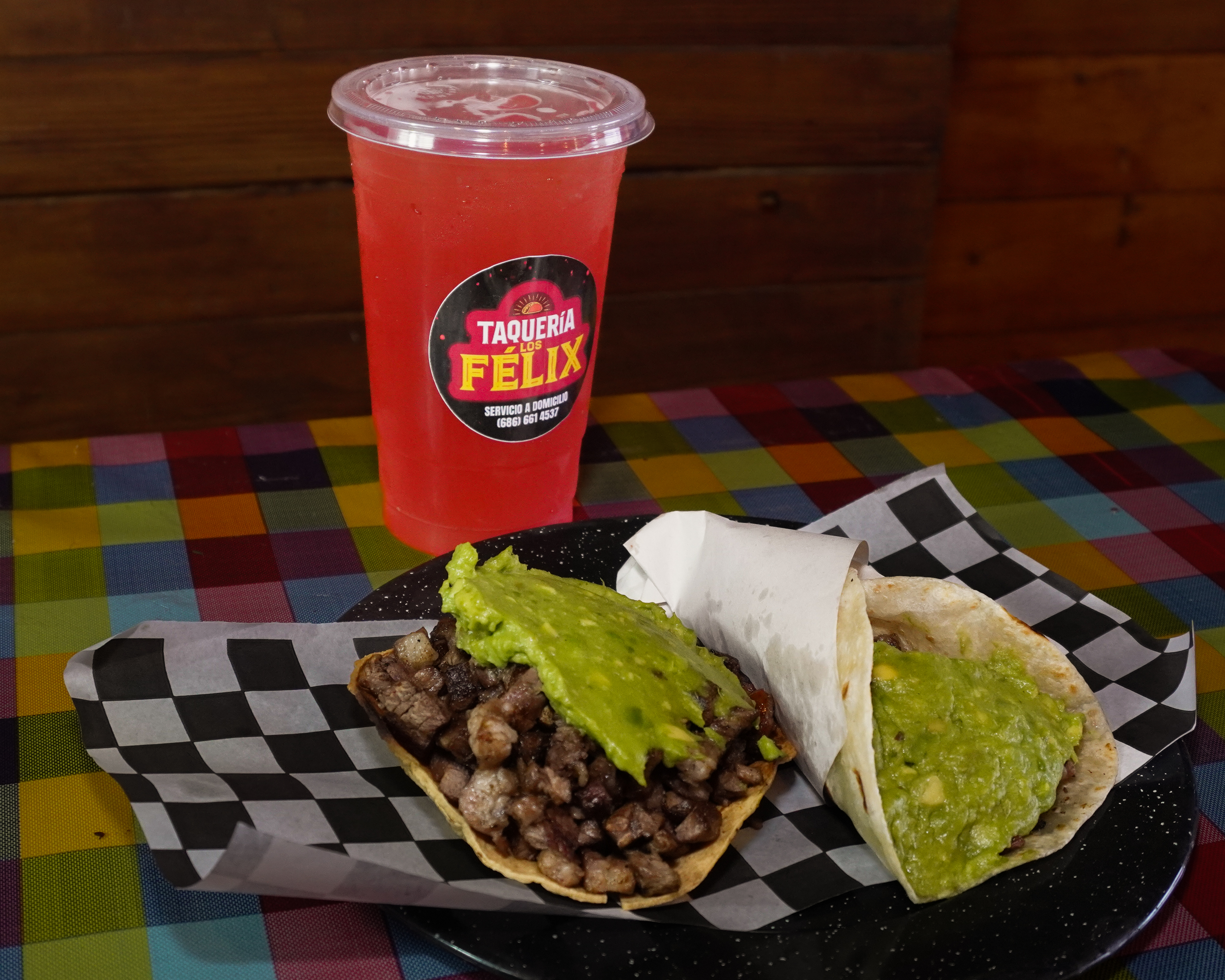 Taco califelix combinado con carne a elegir entre asada, pollo, longaniza o tripa.