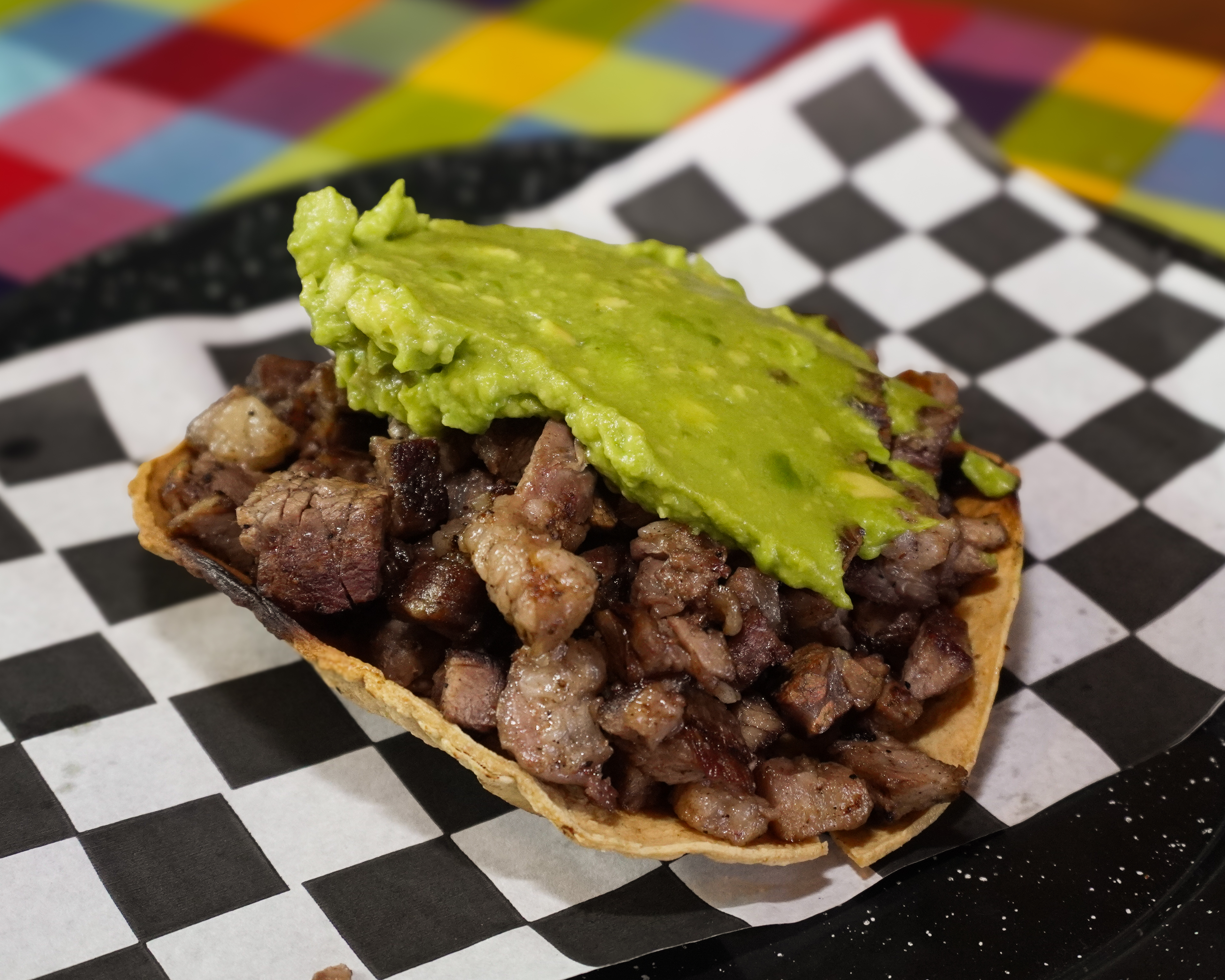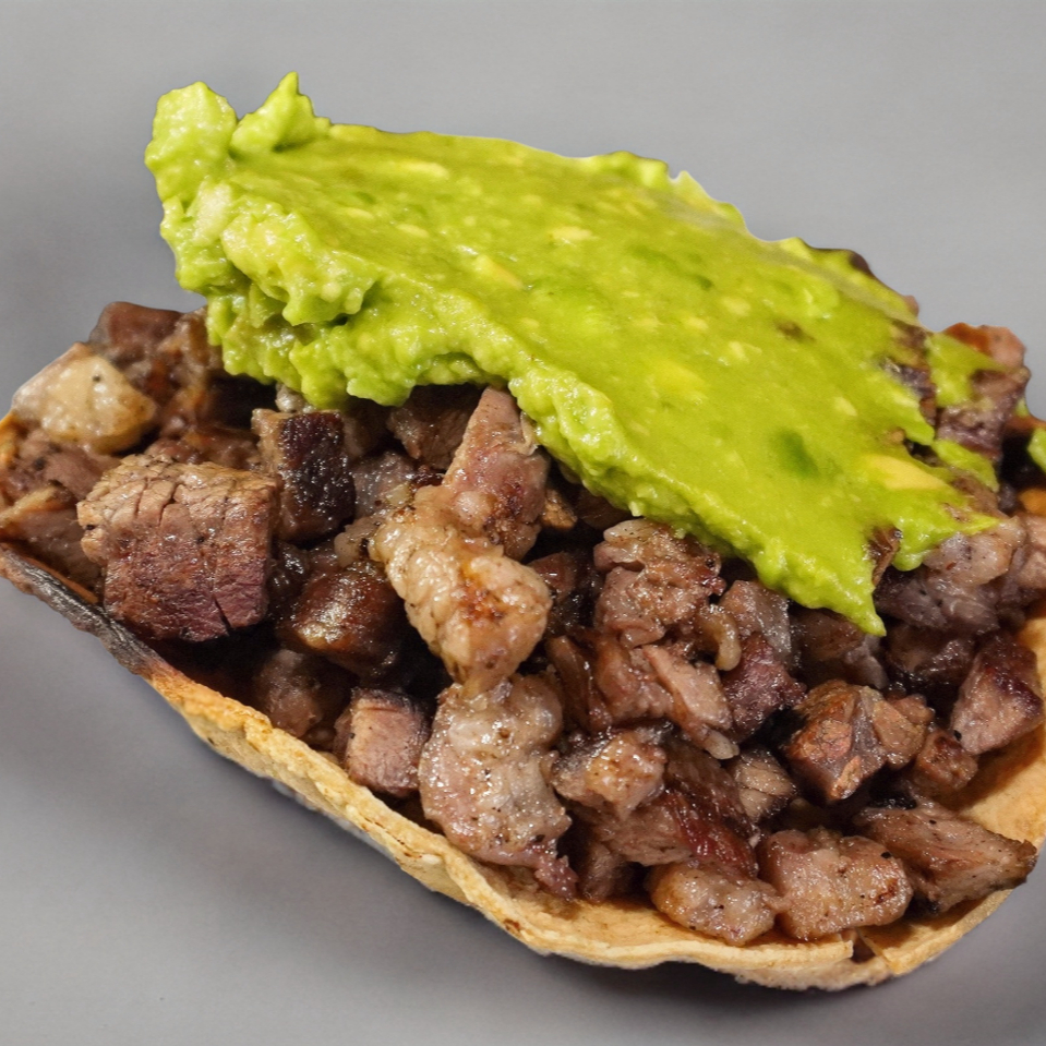 Tostada con carne a elegir entre asada, pastor, pollo, longaniza o tripa.