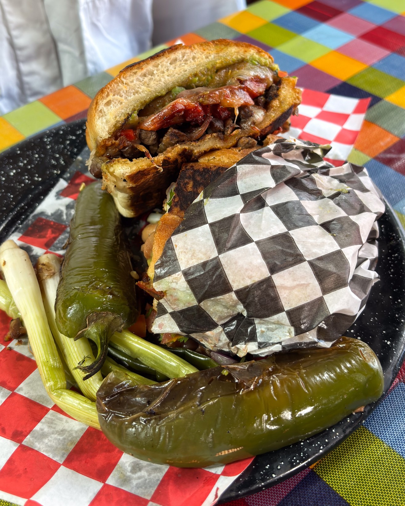 Torta con carne a elegir entre: asada, pastor, pollo, longaniza o tripa.