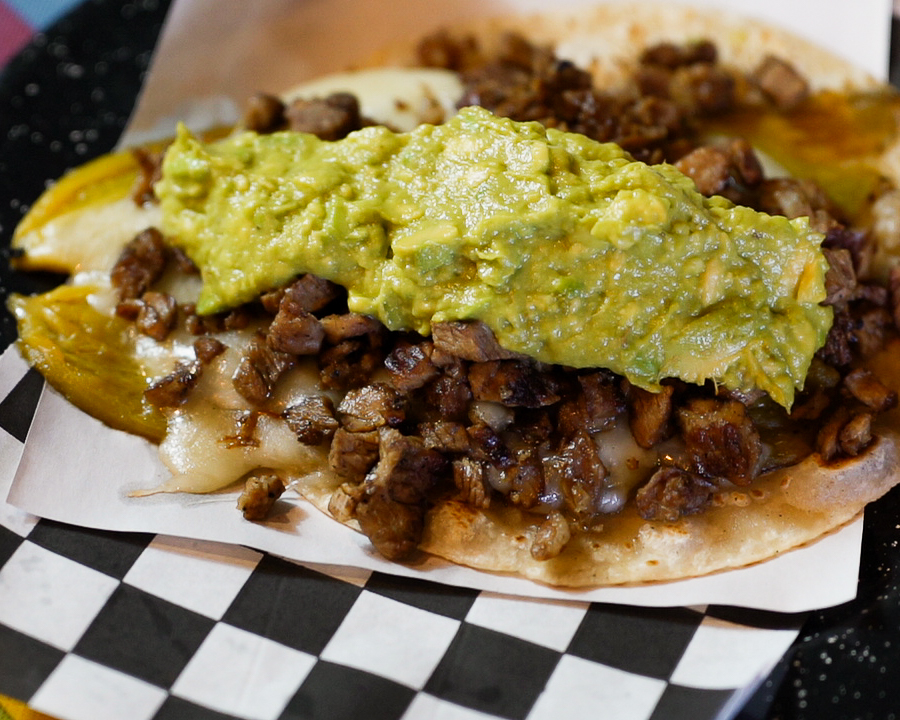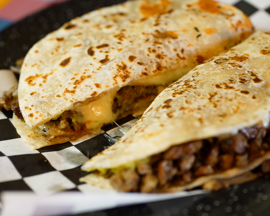 Quesadilla con carne a elegir entre asada, pollo, longaniza o tripa.