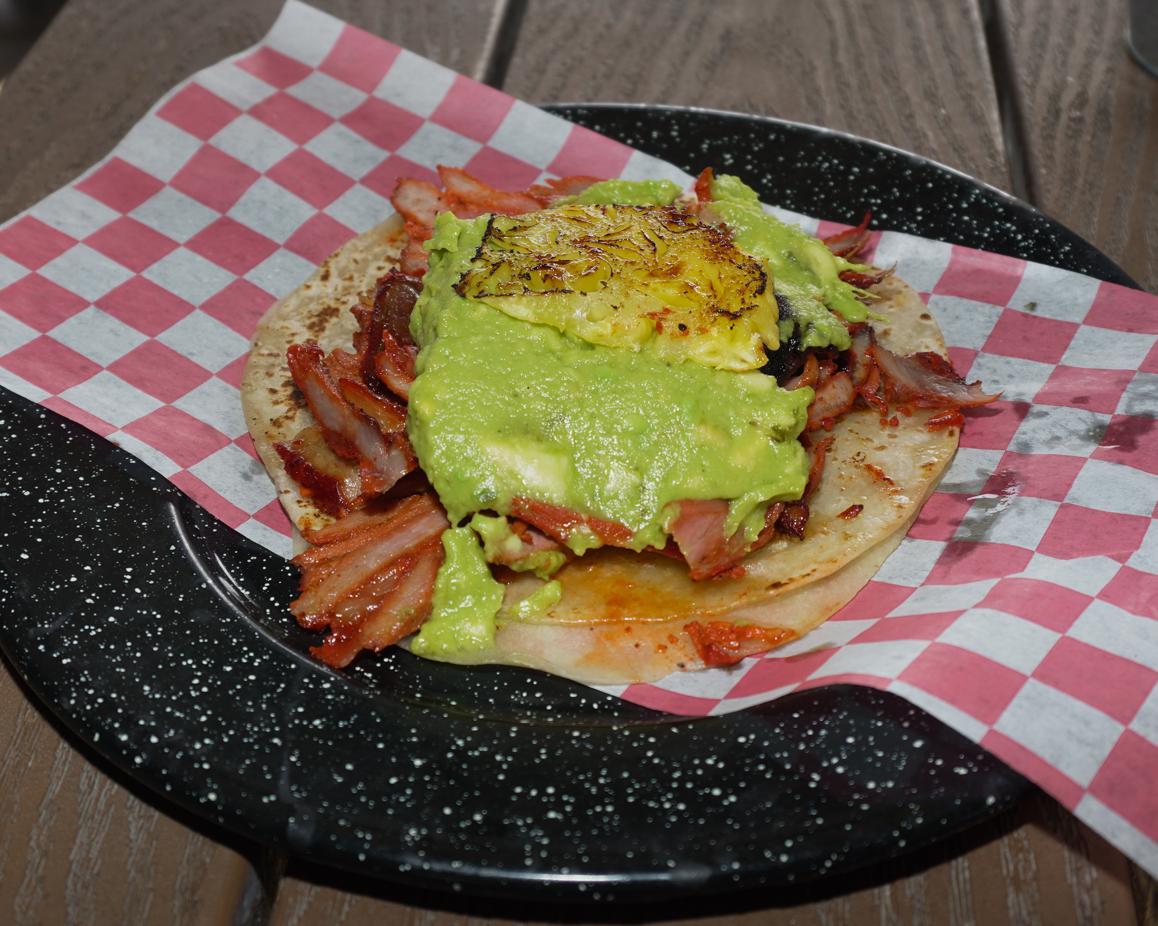 Taco con carne a elegir entre asada, pastor, pollo, longaniza o tripa. inlcuye salsas