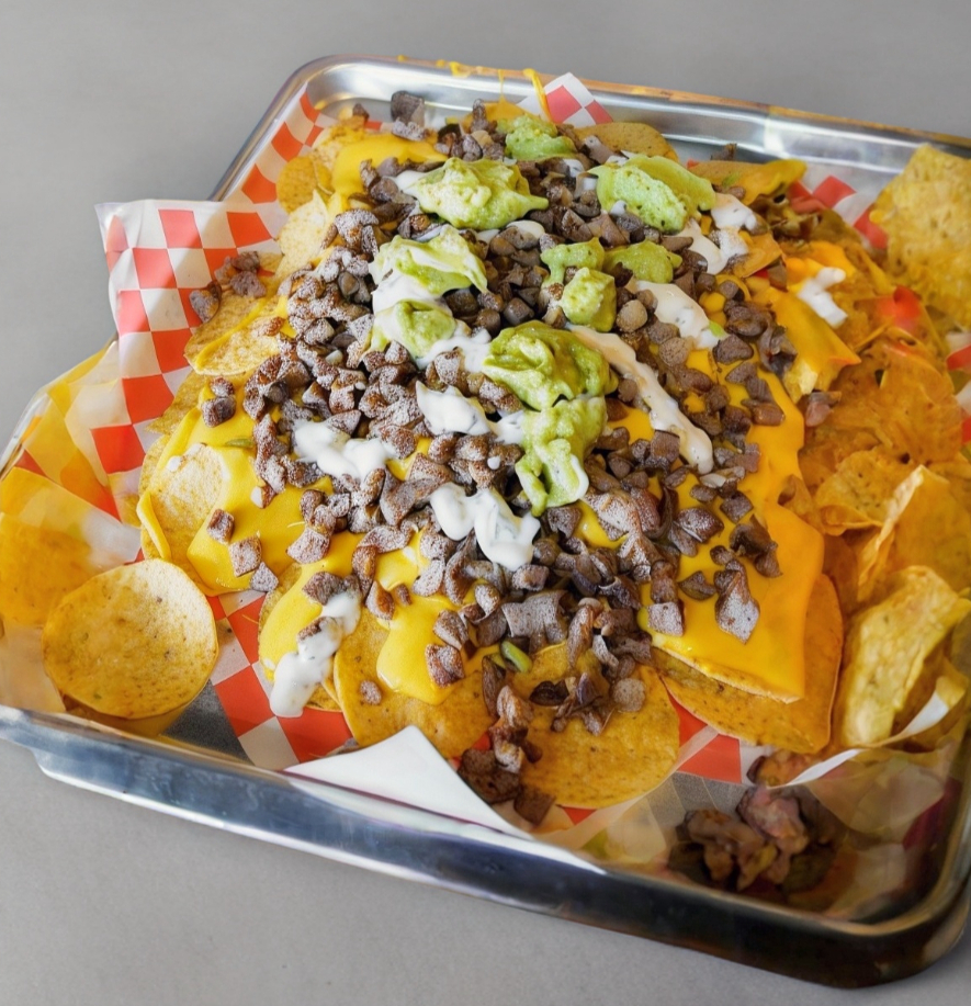 Nachos supremos con carne a elegir entre: asada, pastor, pollo o longaniza.