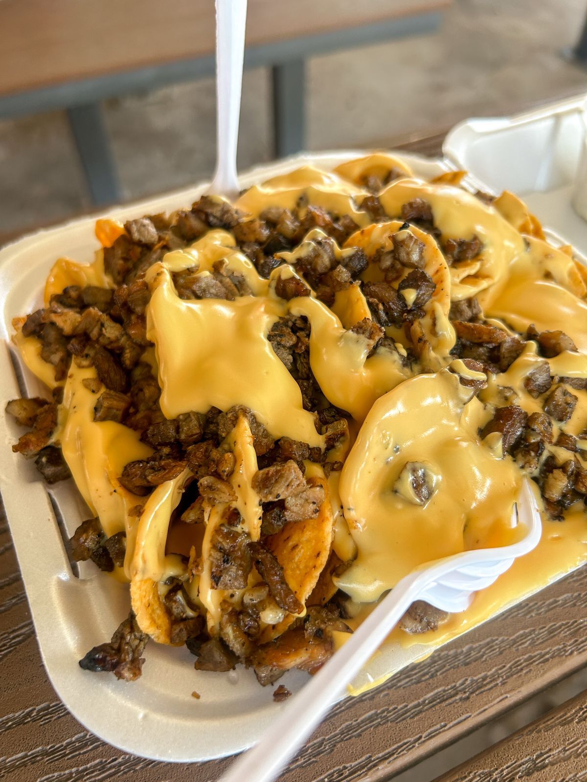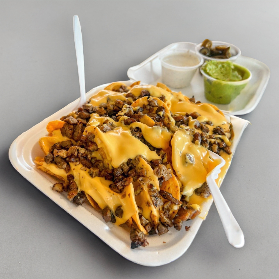 Nachos personales con carne a elegir entre: asada, pastor, pollo o longaniza.