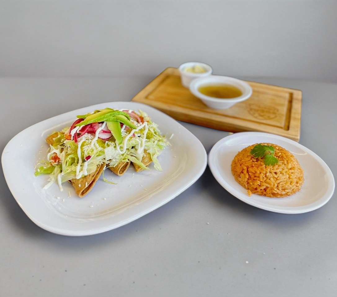 Flauta de maíz rellenas de papa con carne y queso.