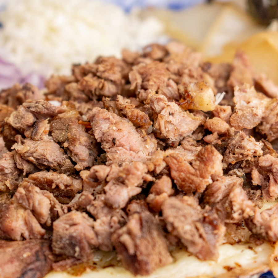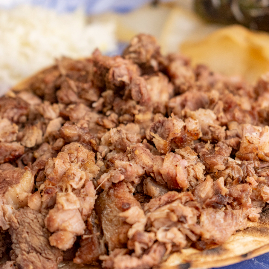 Pellizcada con carne adobada marinada, perfecta para los amantes de la sazón.