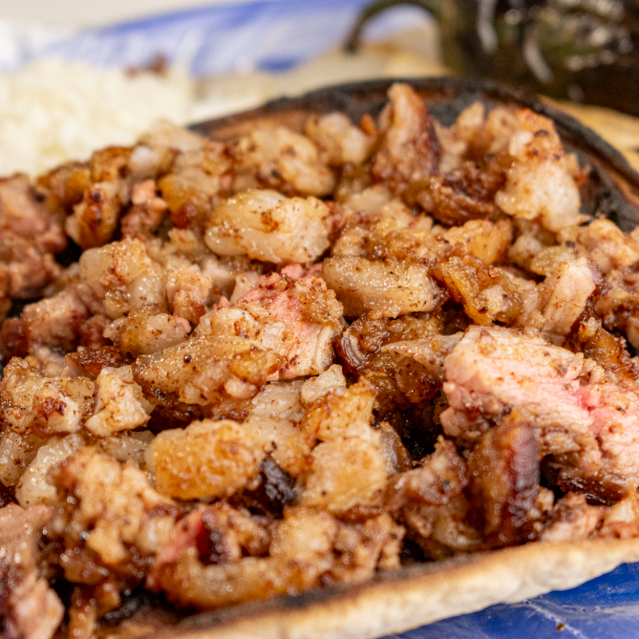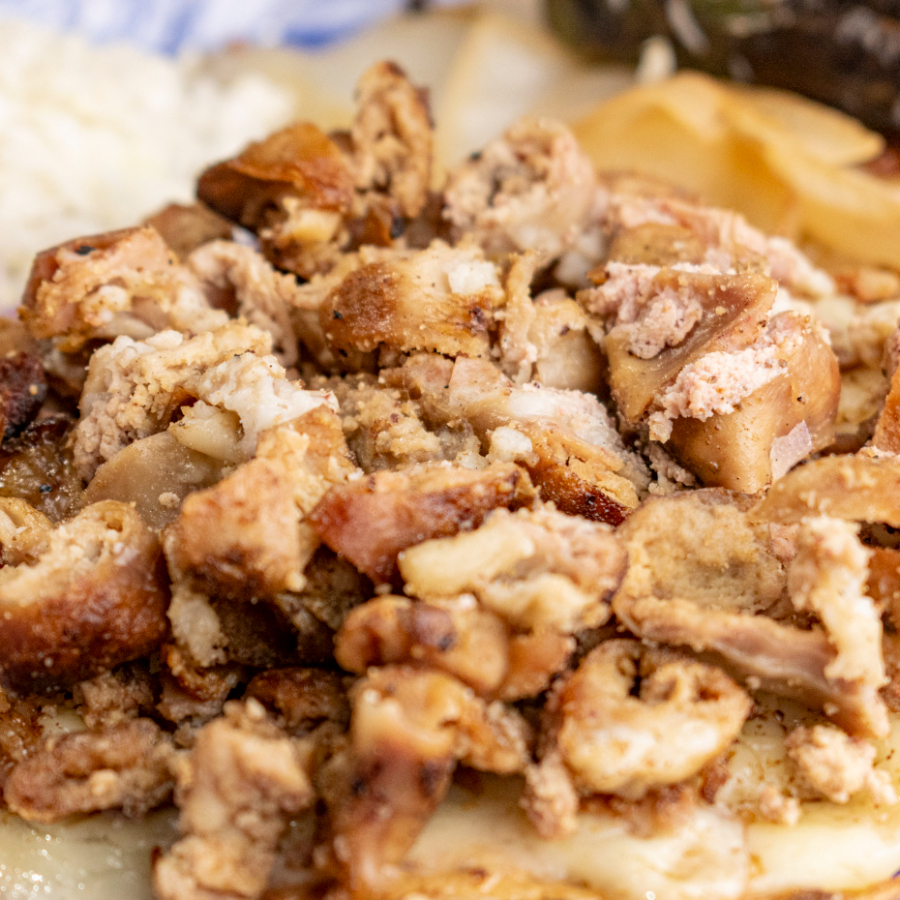 Pellizcada de chicharrón crujiente, una delicia de textura y sabor.