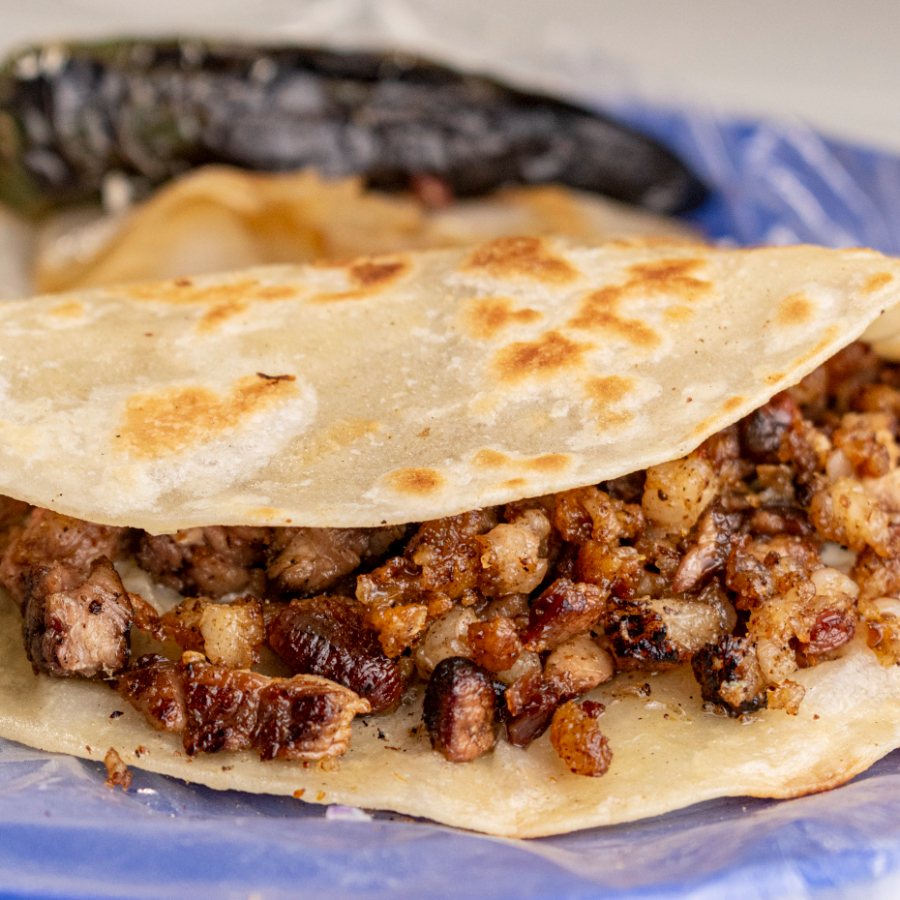 Taco mixto con combinación de carnes, lleno de sabor y tradición.