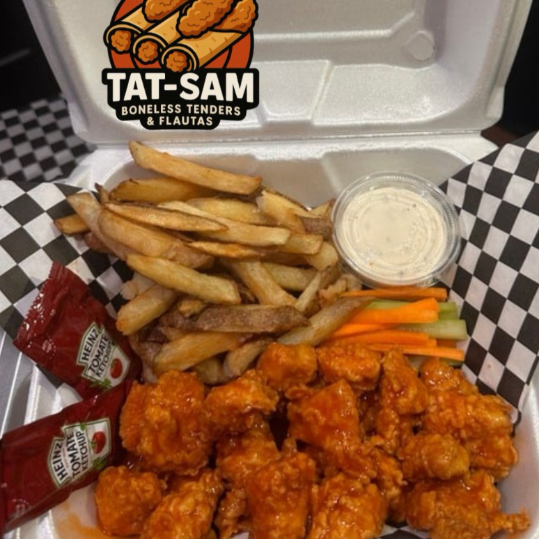 350 gr de pechuga empanizada, 350 gr de papas fritas y 2 oz de aderezo Ranch