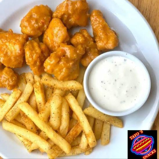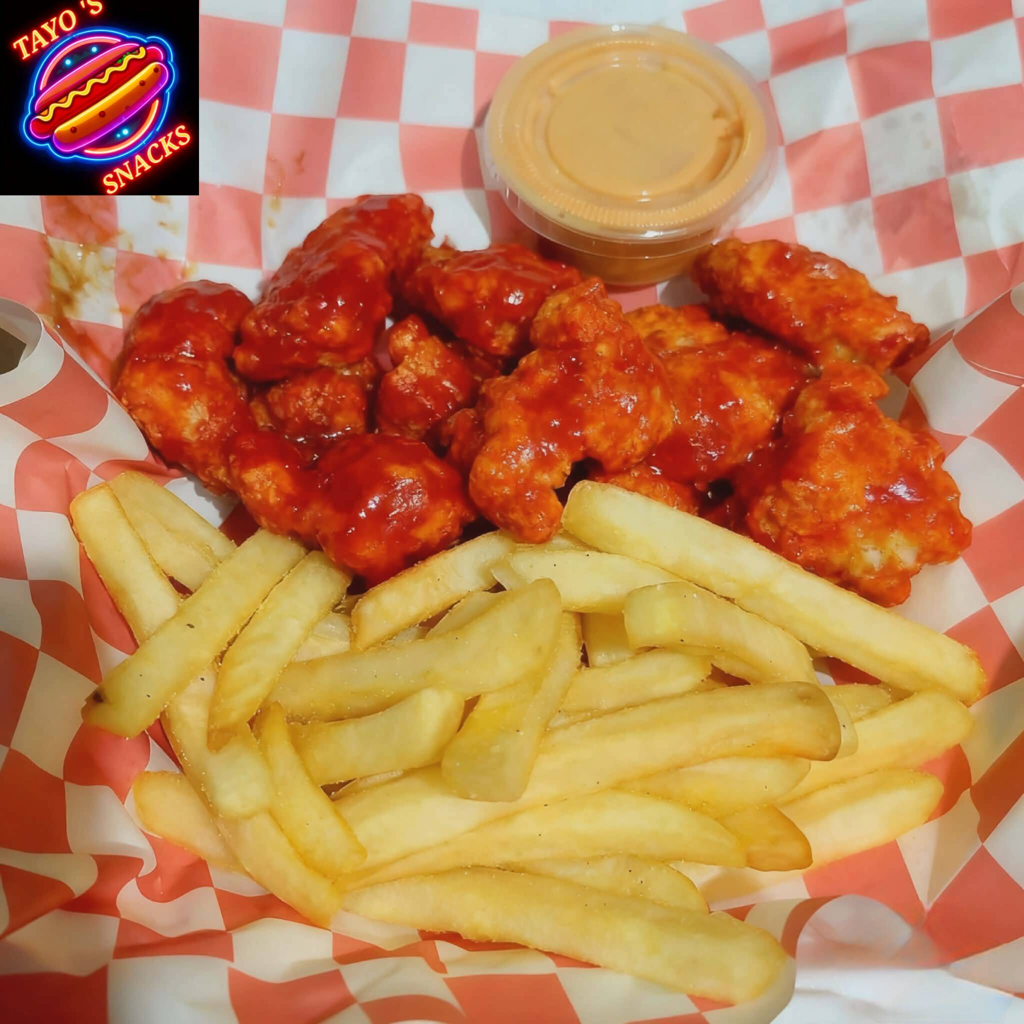 10 piezas de boneless, apio, zanahoria, papas fritas