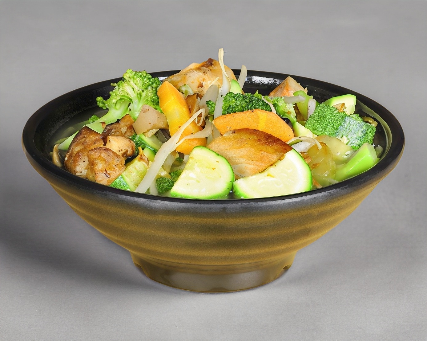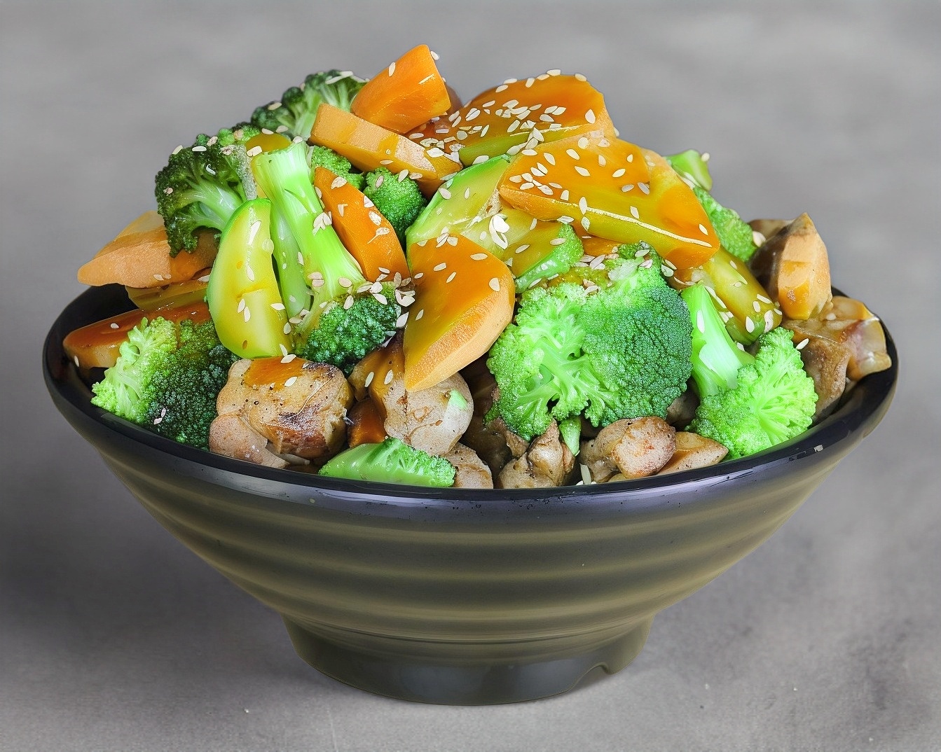 Pollo, jalapeño, 3 quesos, zanahoria, brócoli, bañado con salsa teriyaki
