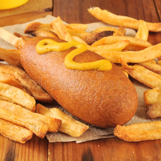 Banderilla de salchicha con papas fritas