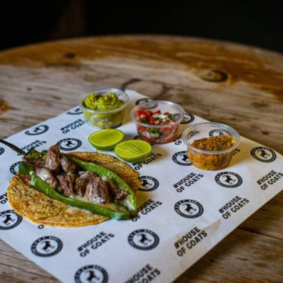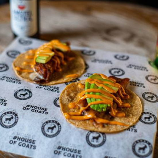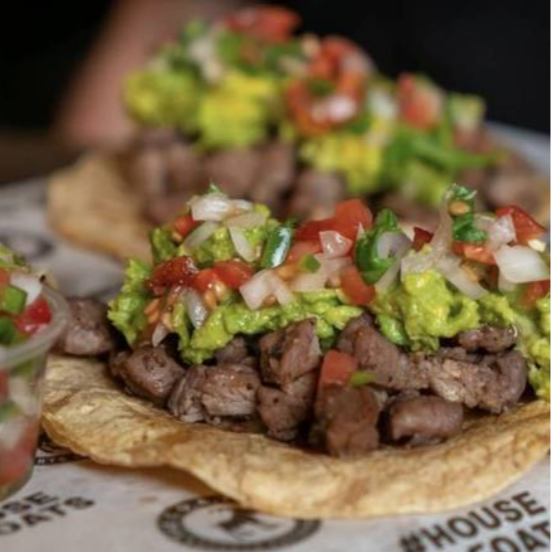 Orden de 3 tacos de arrachera de tortilla de maíz con guacamole de la casa y salsa bandera.
