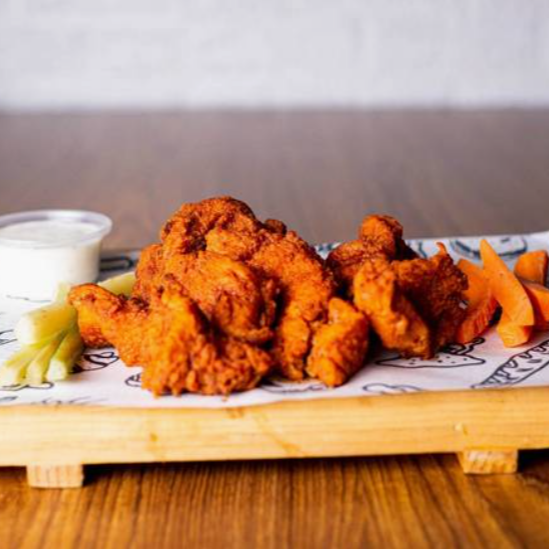 300 g De pechuga de pollo, bañadas en salsa Buffalo o BBQ a tu elección.