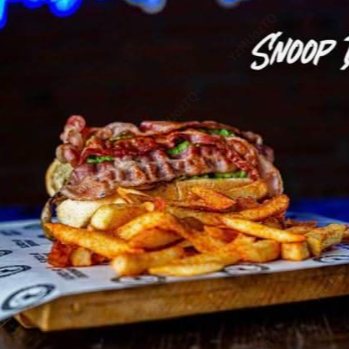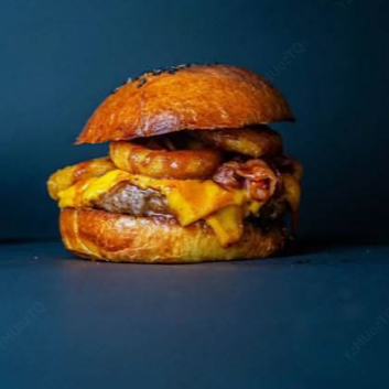 Pan artesanal, 180 g de carne de res, aros de cebolla, tocino y queso amarillo, bañada en nuestra salsa BBQ, acompañada de papas fritas.
