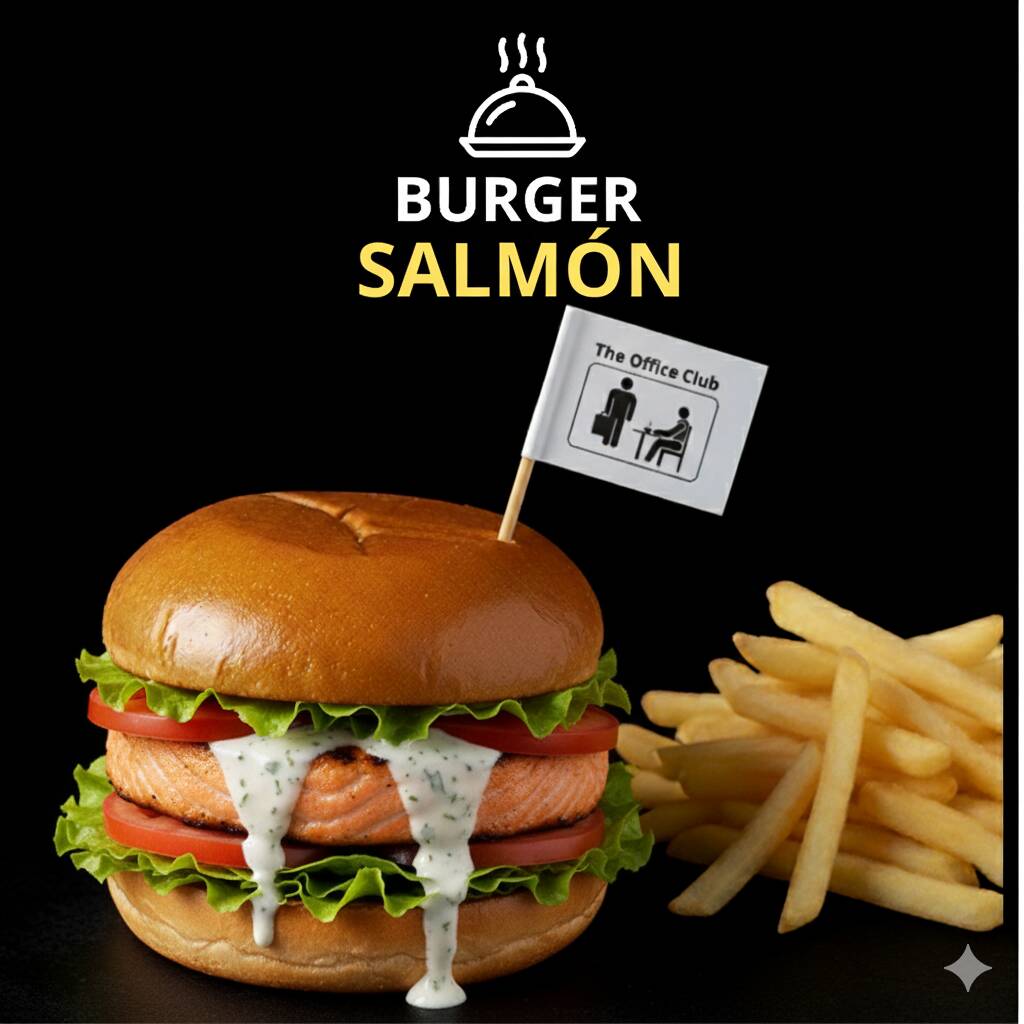 Delicioso filete de salmón a la plancha con aderezo ranch, tomate fresco y lechuga crujiente, servido en pan brioche suave. Acompañada de papas fritas doradas. Un sabor fresco y gourmet en cada bocado.