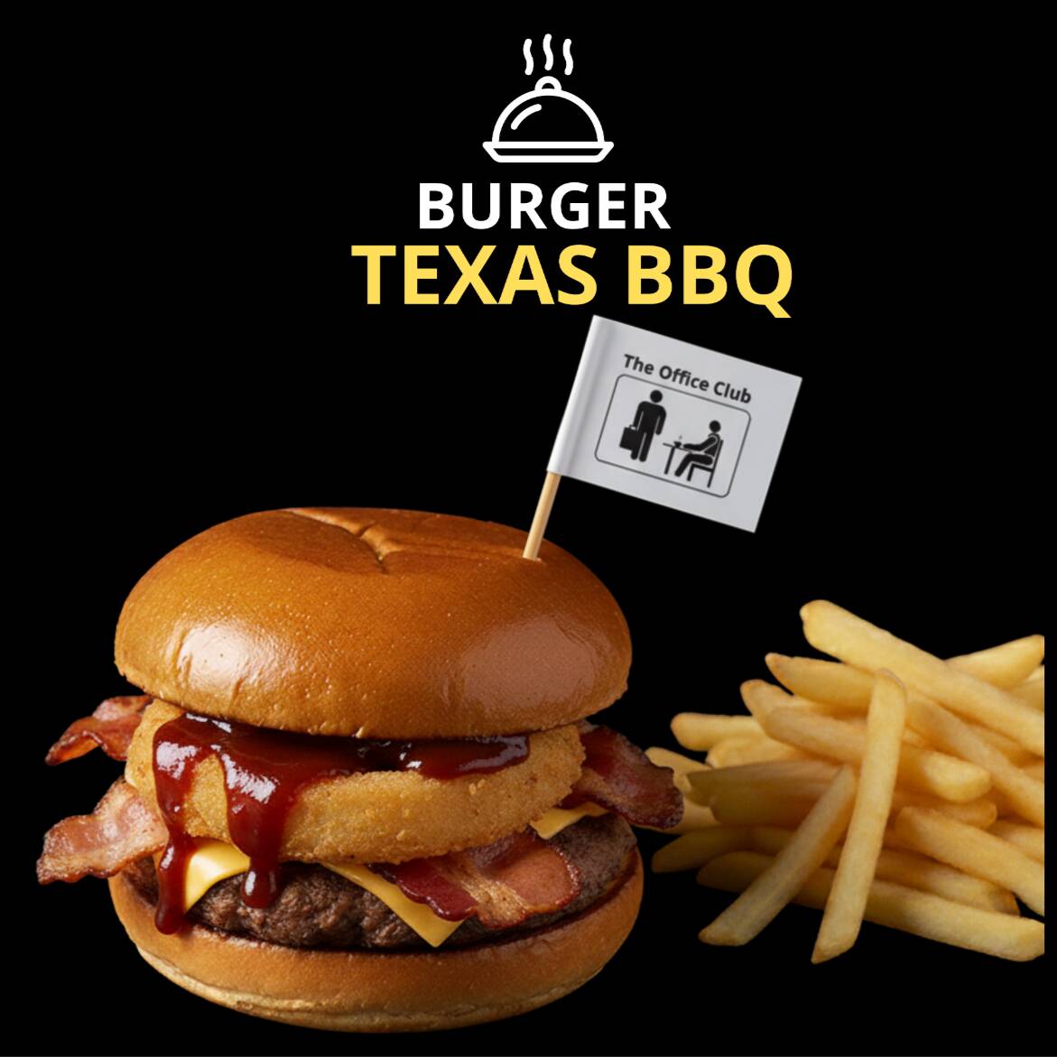 Jugosa carne de res bañada en salsa BBQ, servida en pan brioche suave con crujientes aros de cebolla. Acompañada de papas fritas doradas y crujientes. Sabor intenso y ahumado en cada bocado.