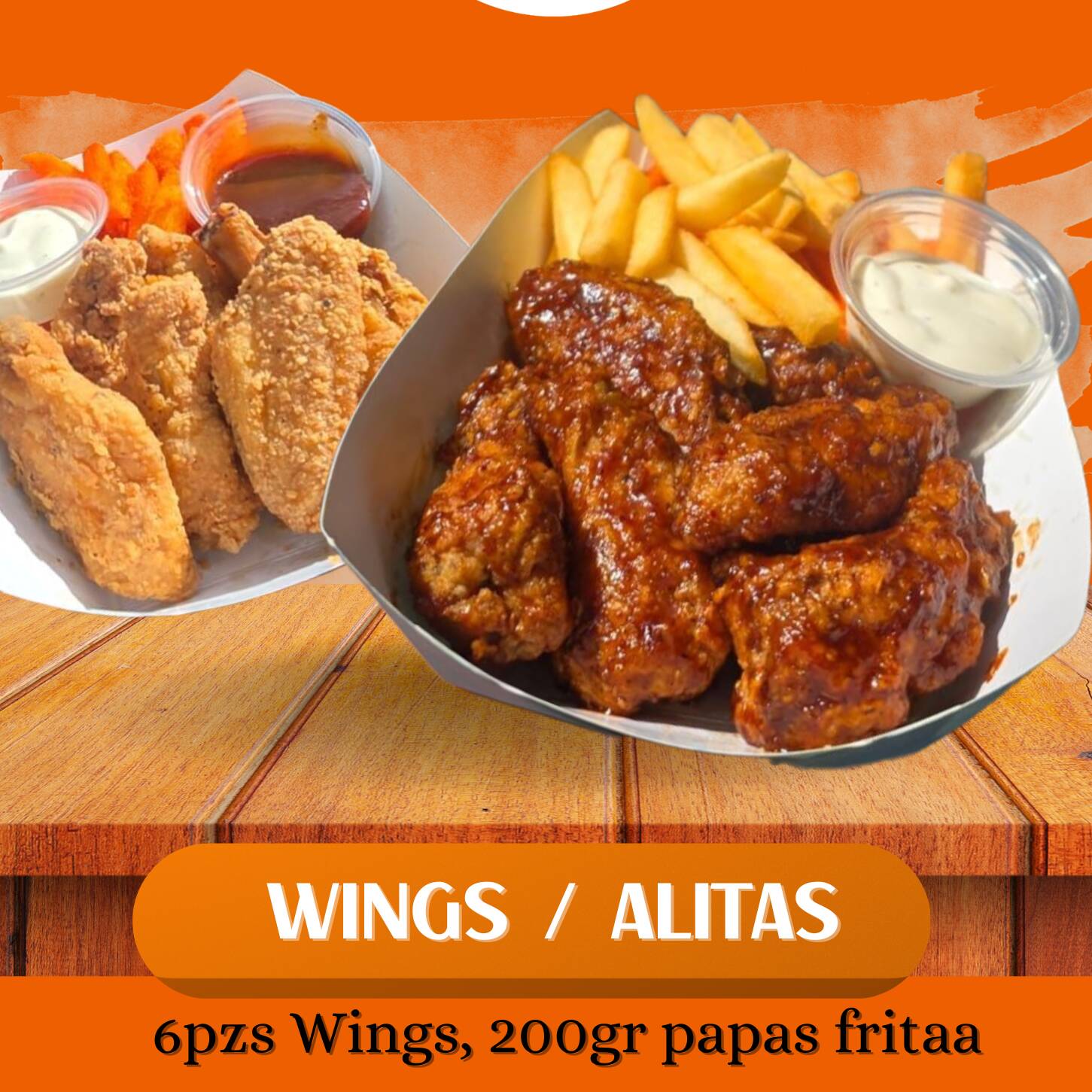 6pzs alitas con papas fritas