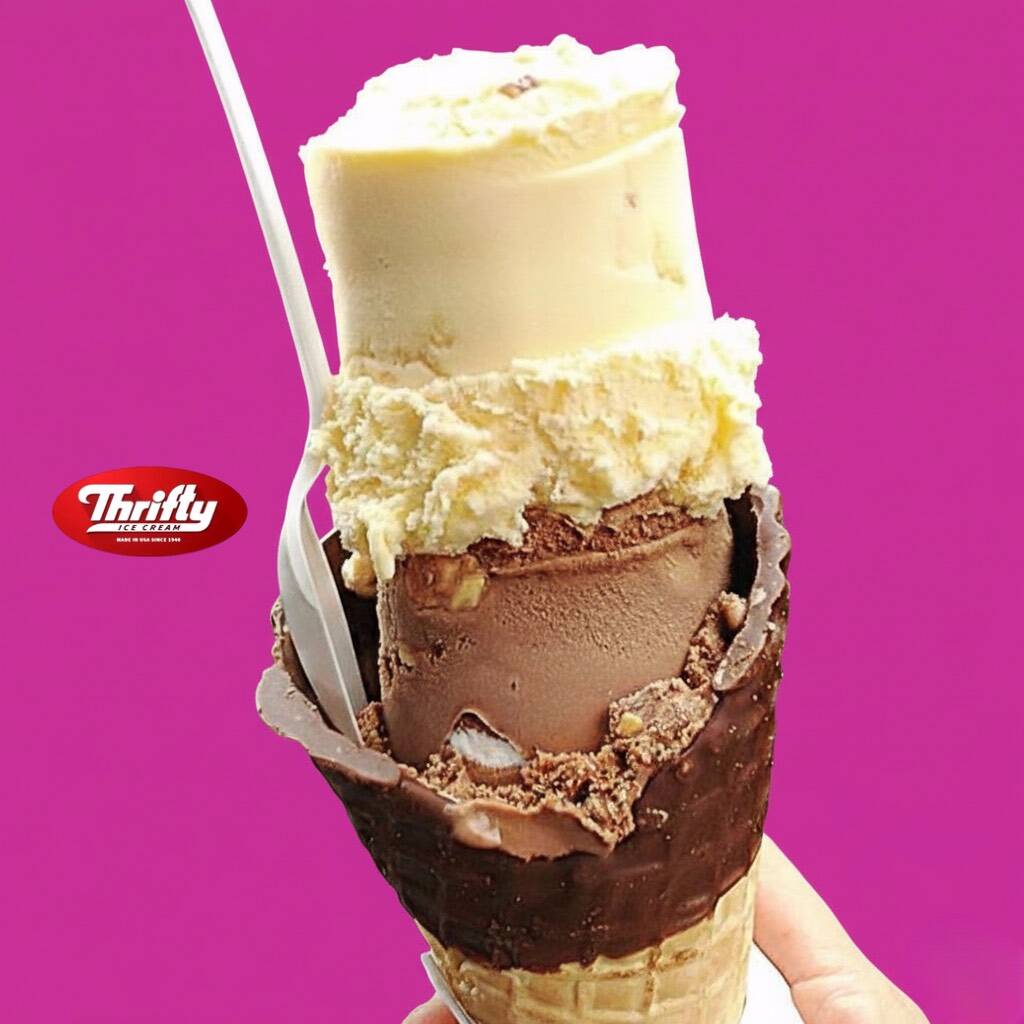 Vaso con dos bolas de nieve de tu elección, acompañado de un barquillo de waffle.