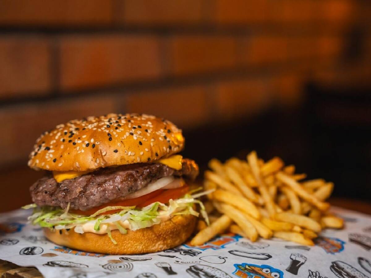 Carne 100% de res, queso amarillo o blanco, lechuga , tomate, cebolla, chile y tiras de tocino.