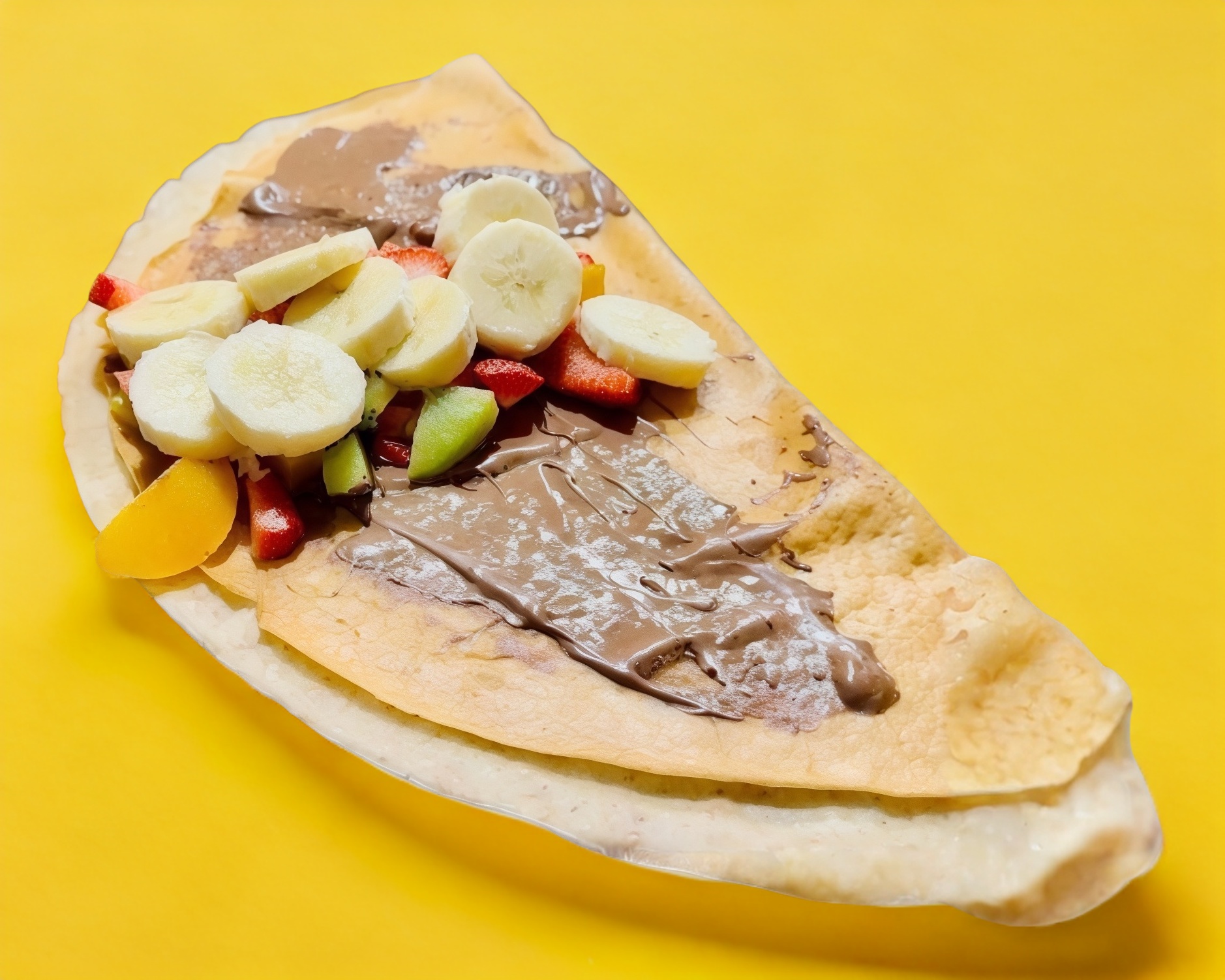Incluye Nutella, plátano, fresa, kiwi, durazno y crema batida.