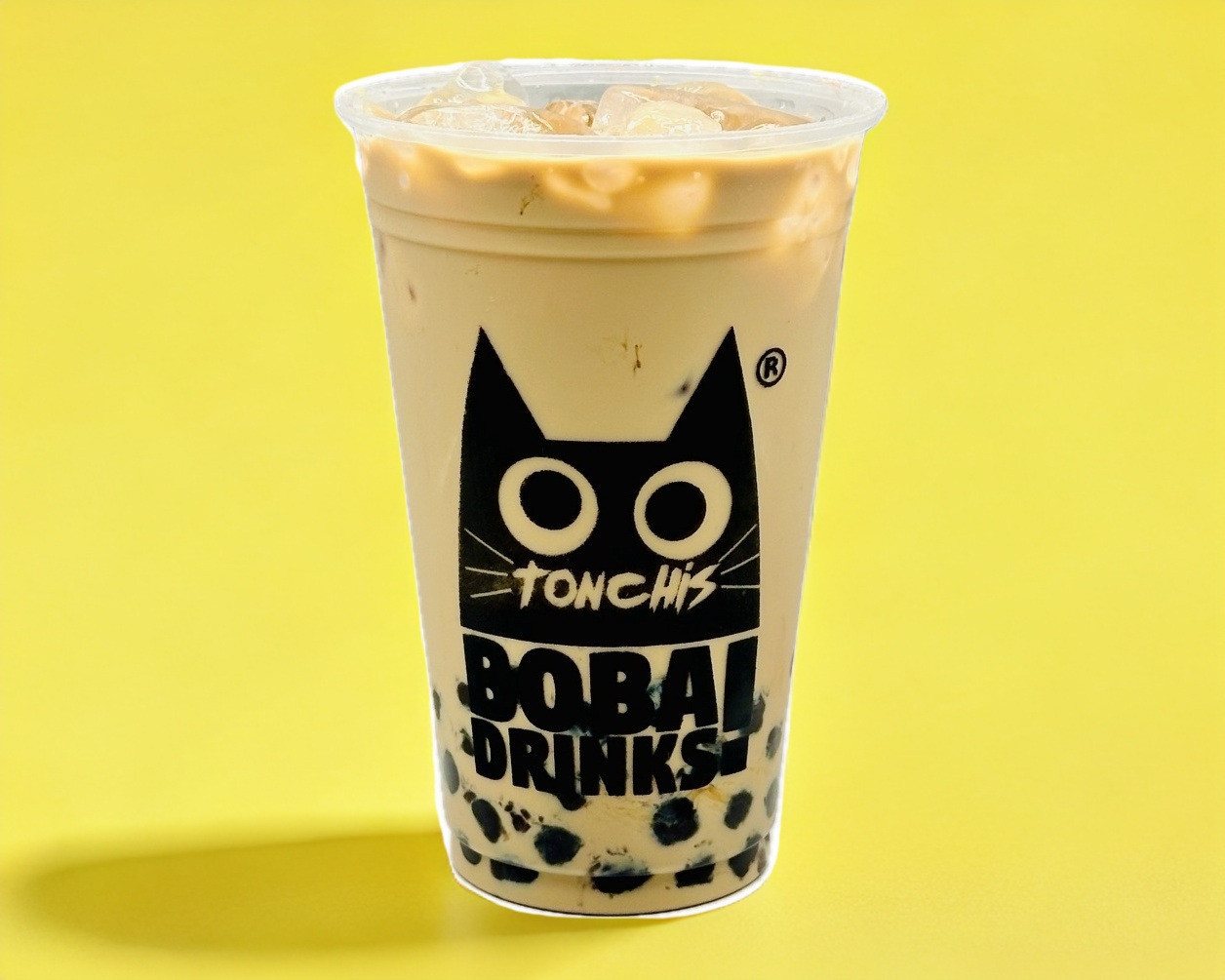 Bebida líquida con leche deslactosada, sabor te negro incluye una porción de boba