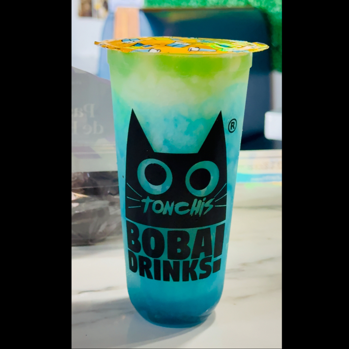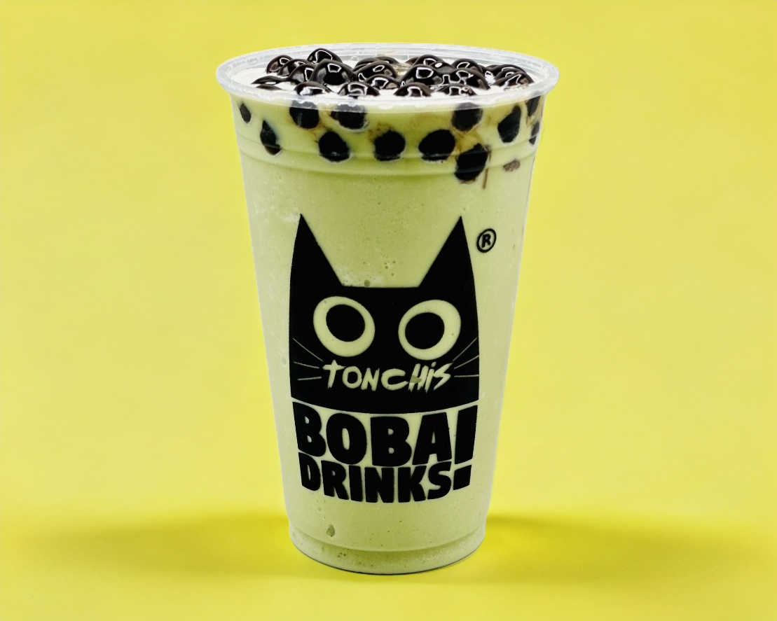Bebida frappeada con leche deslactosada, sabor matcha incluye una porción de boba