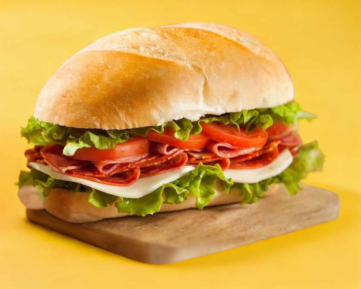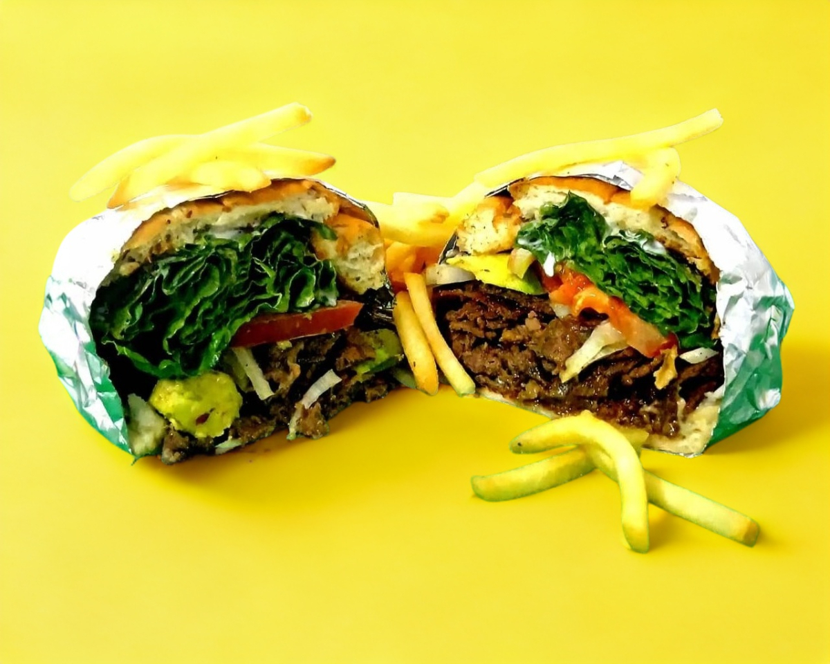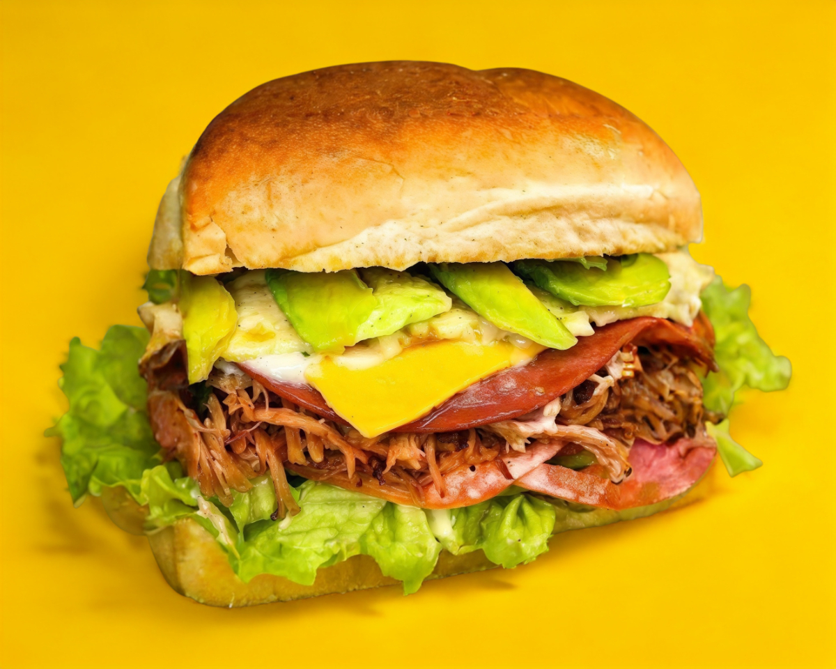Torta de carne asada y carne al pastor, con todos sus vegetales, lechuga, tomate, cebolla, rico aguacate y quesito monterrey gratinado. Acompañada de papas fritas y una salsita de chile y ajo. De las tortas más pedidas!.
