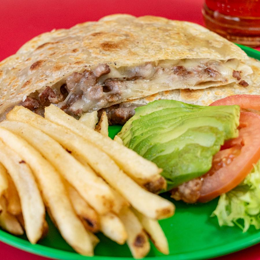 Quesadilla en harina con asada.