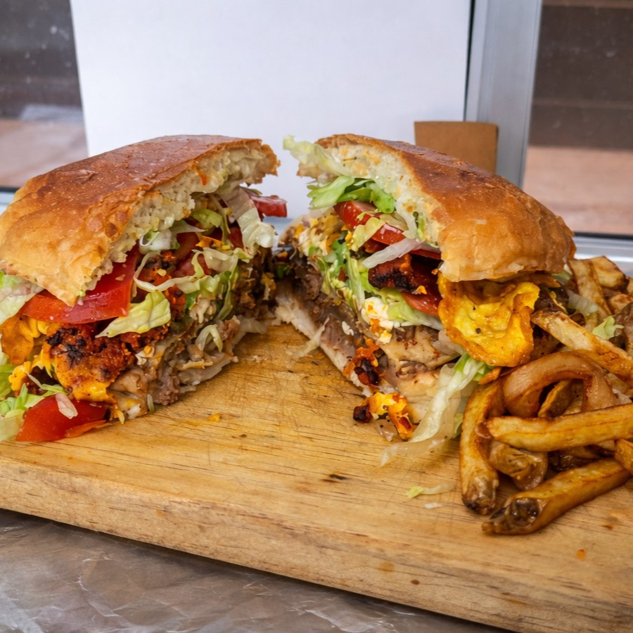 Milanesa, chuleta, chorizo, huevo, salchicha y queso.