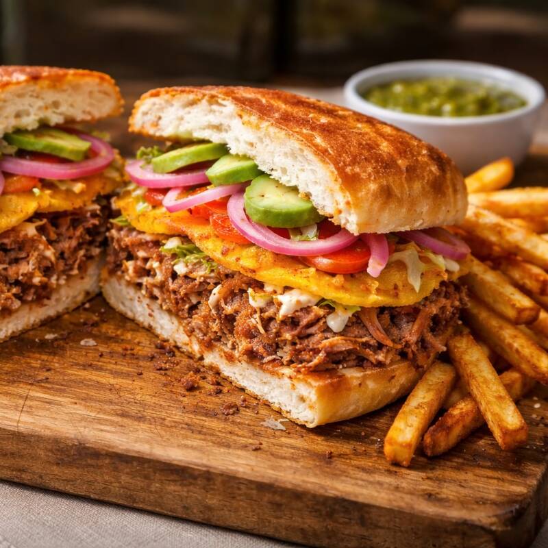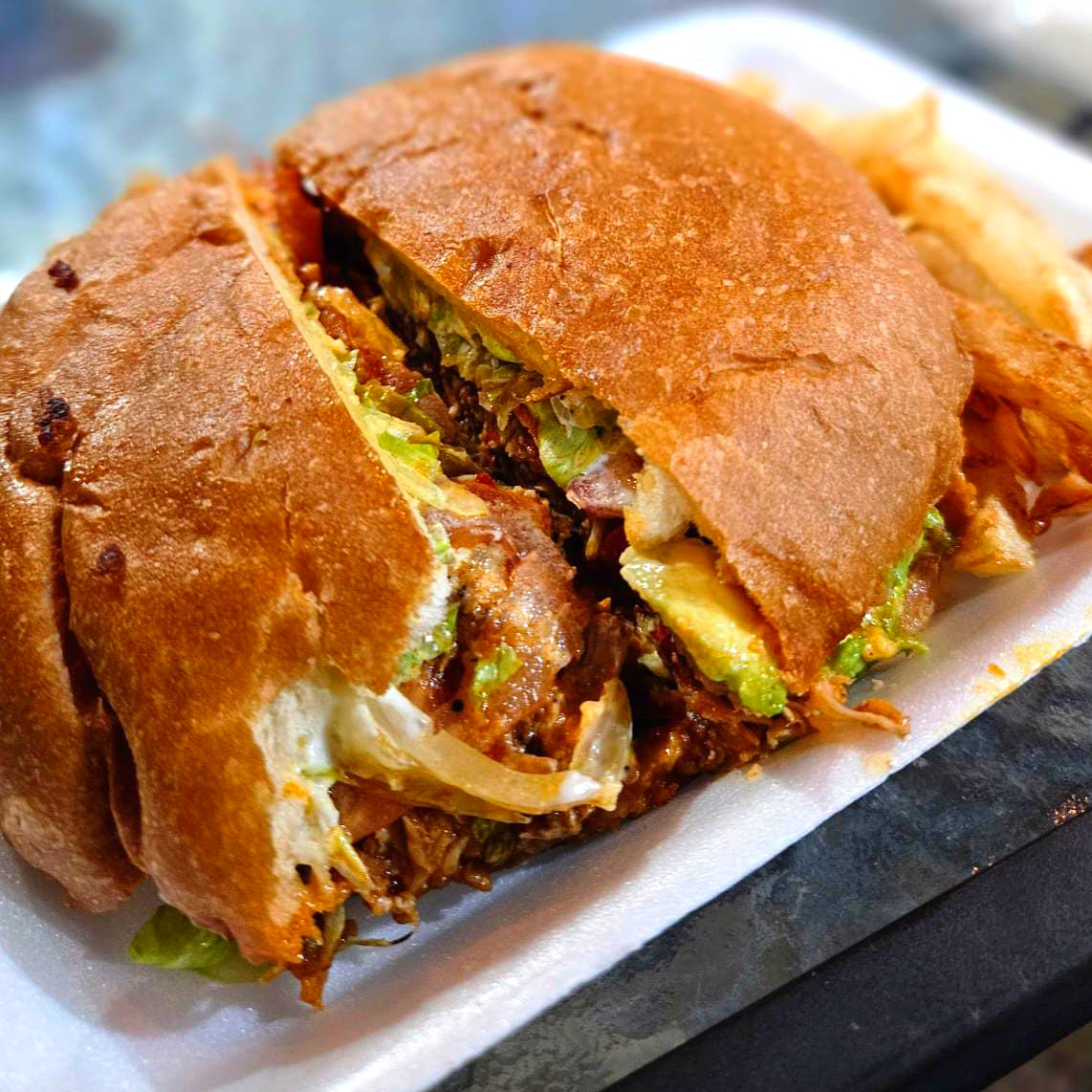 Elige tu torta de milanesa o pechuga, chalupa de salsa roja o verde, queso y cebolla.