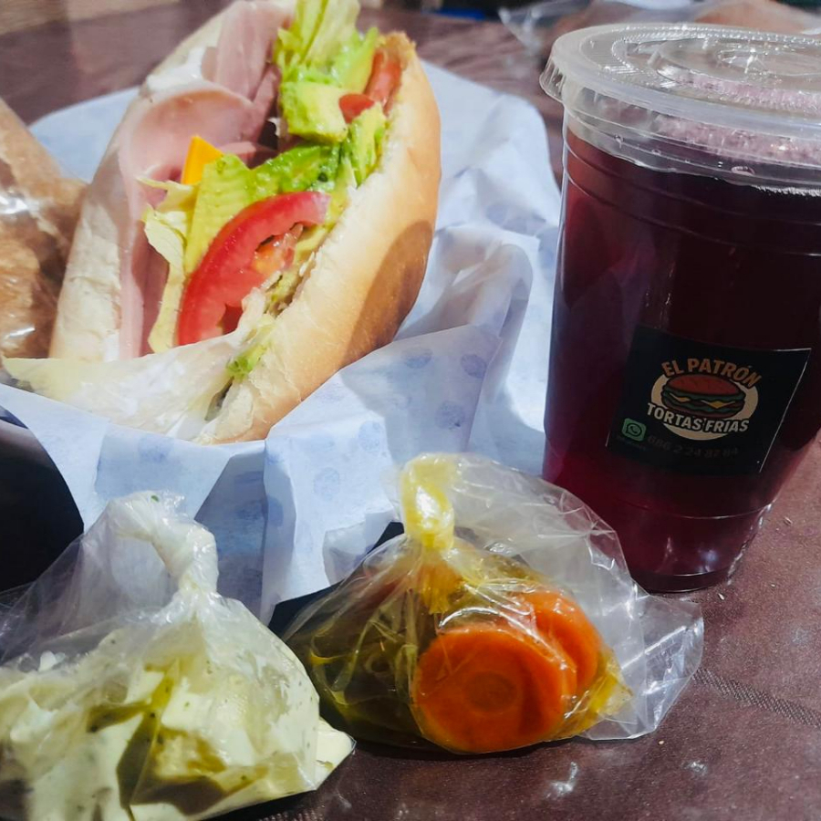2 ingredientes: jamón y queso, bolonia y queso o jamón y bolonia. Lleva lechuga, tomate, aguacate y mayonesa. Incluye chicharrón, aderezo aguacate y jalapeño.