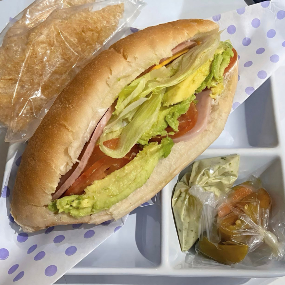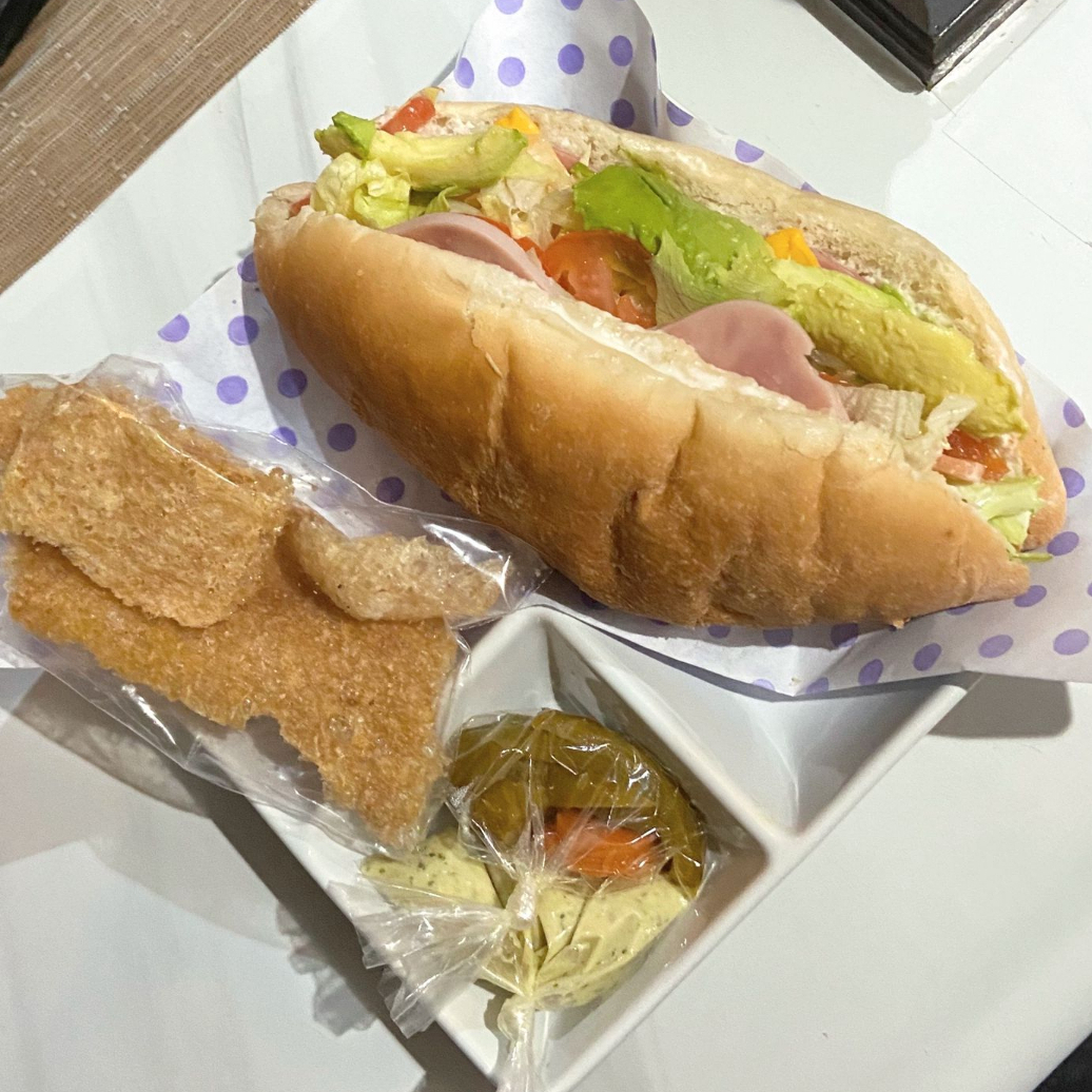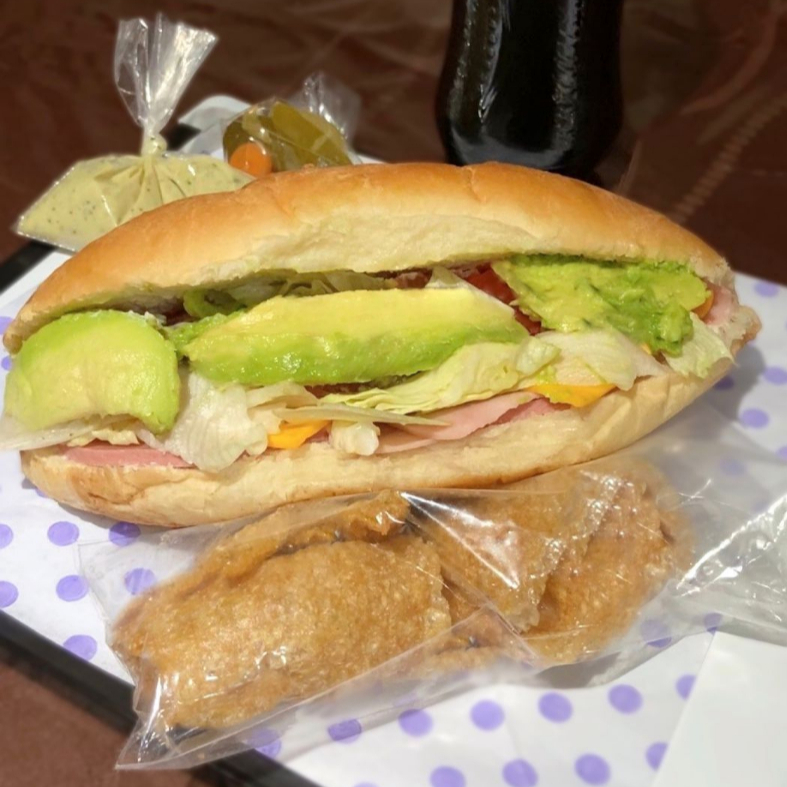 jamon,bolonia,queso amarillo y queso blanco con lechuga,tomate,aguacate y mayonesa. incluye jalapeño y aderezo.