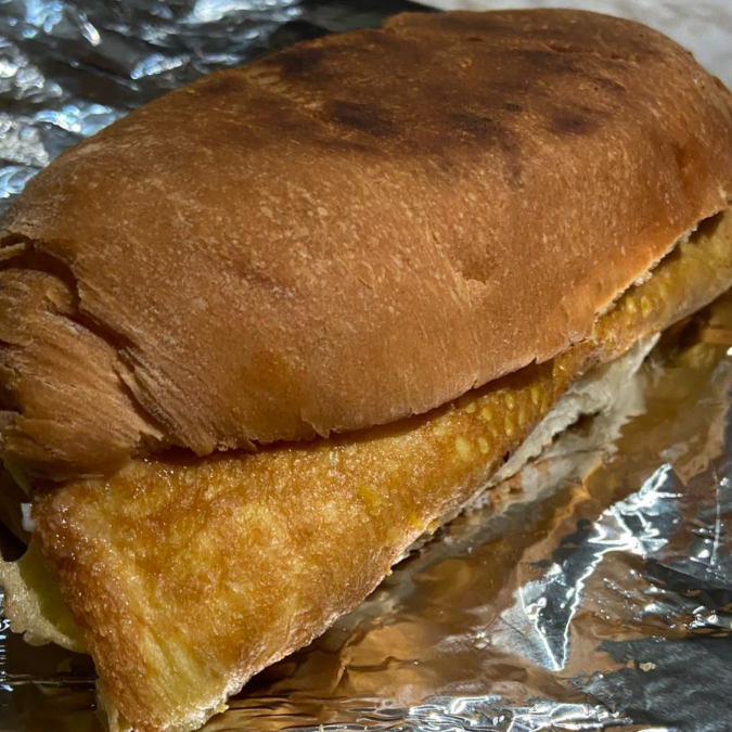 Torta de Omelette con jamón, tocino y queso. Incluye jalapeño.