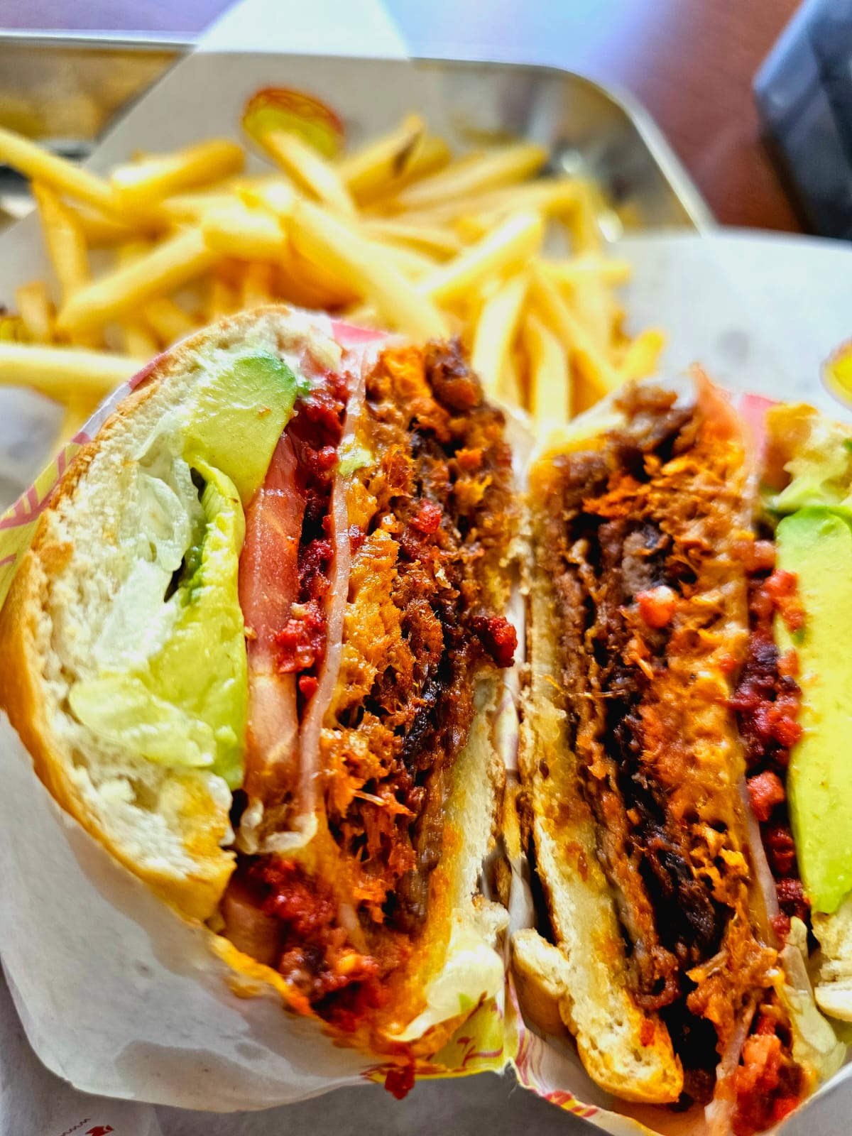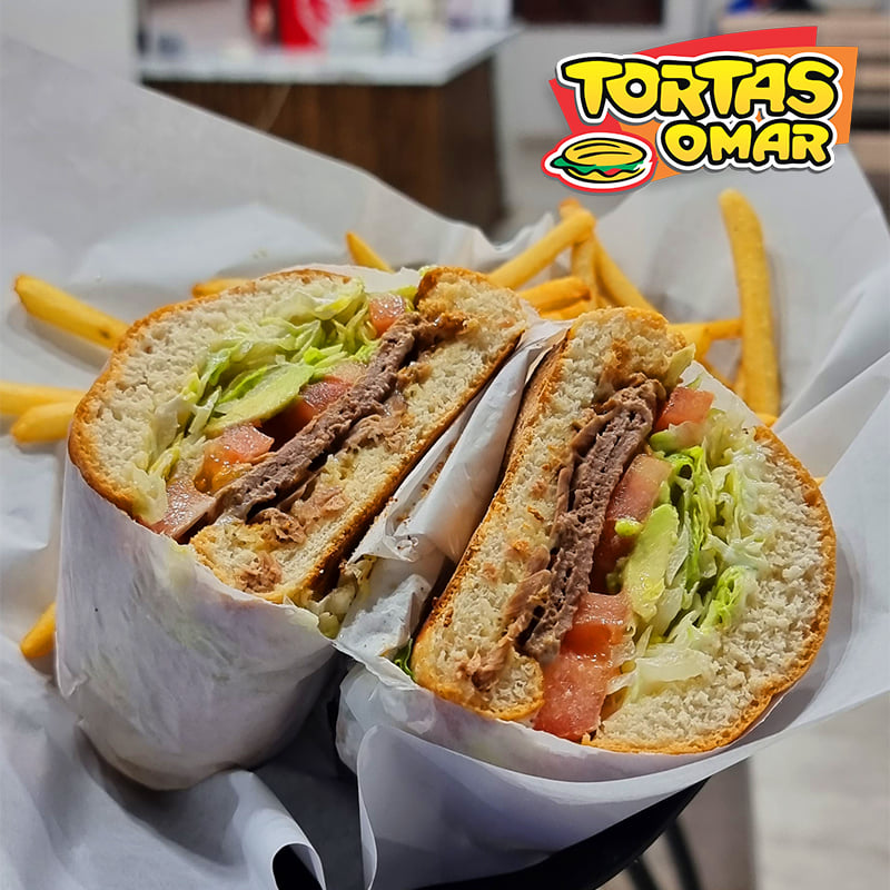 Torta de Lomo, lechuga, tomate, aguacate y mayonesa