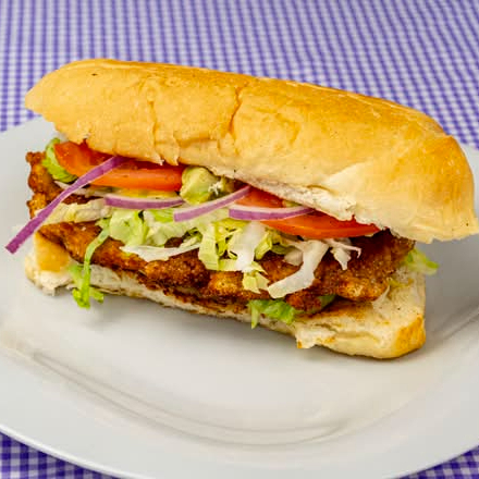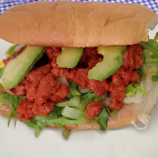 Frijoles Refritos, Milanesa de Pollo Empanizada, Lechuga, Tomate, Cebolla Roja, Aguacate