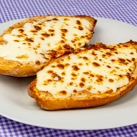 Dos piezas de molletes con frijoles refritos, chorizo, y queso Mozarella gratinado, acompañados de chile jalapeño