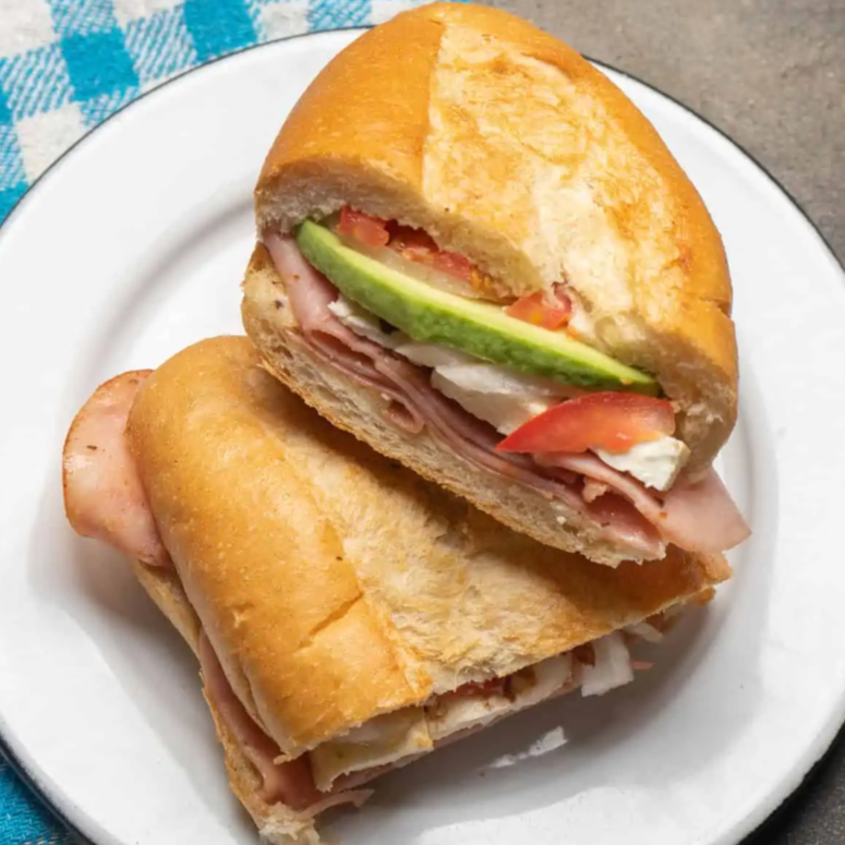 TELERA MAYONESA 4 REBANADAS DE JAMON CEBOLLA GUISADA TOMATE QUESO DERRETIDOADA TOMATE