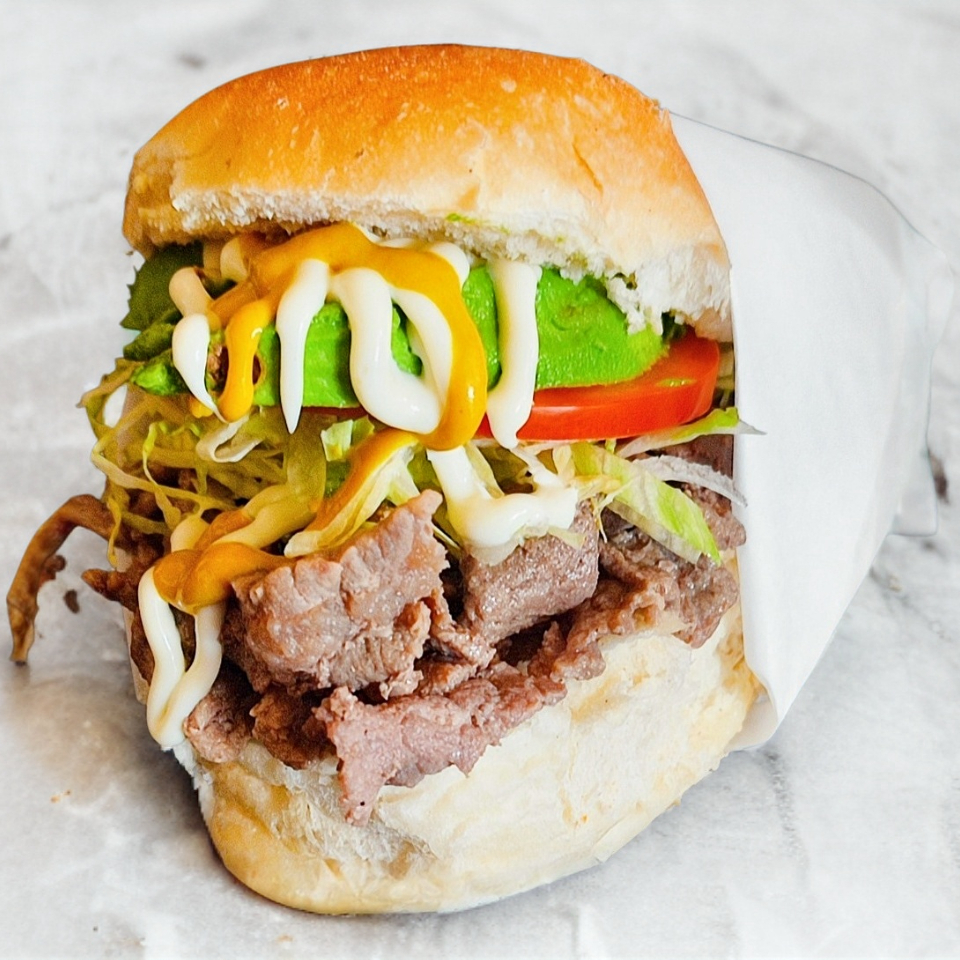 ¡ Prueba nuestra llenadora Torta Vaquera ! Contiene : carne asada,tocino,salchicha y queso gratinado. Además : lechuga,tomate,aguacate,mayonesa y mostaza.