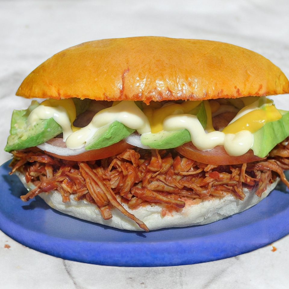 Disfruta del singular sabor de la cochinita pibil estilo Yucatán acompañada con tomate,aguacate,mayonesa y mostaza.