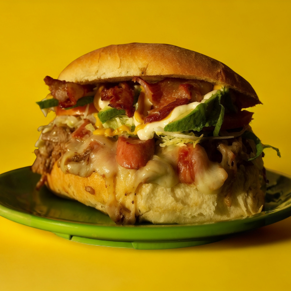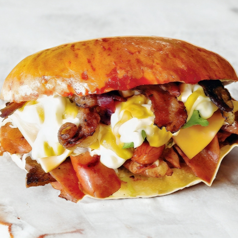 ¡ Para ese apetito voraz ! Nuestra versión de la torta cubana con lomo de cerdo,tocino,jamón,queso manchego y salchicha.Además lechuga,tomate,aguacate,mayonesa y mostaza.