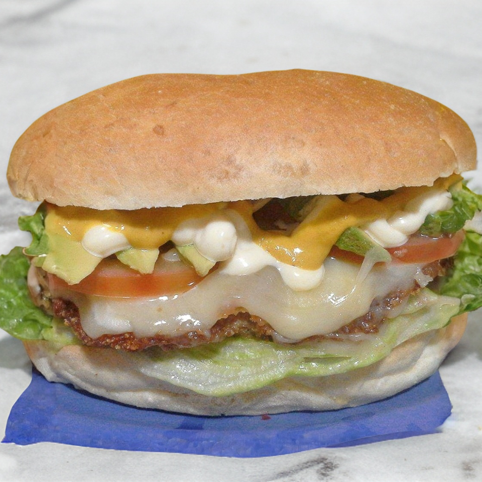 ¡ Sólo para conocedores ! La tradicional milanesa empanizada de res con queso gratinado. Además : lechuga,tomate,aguacate,mayonesa y mostaza.