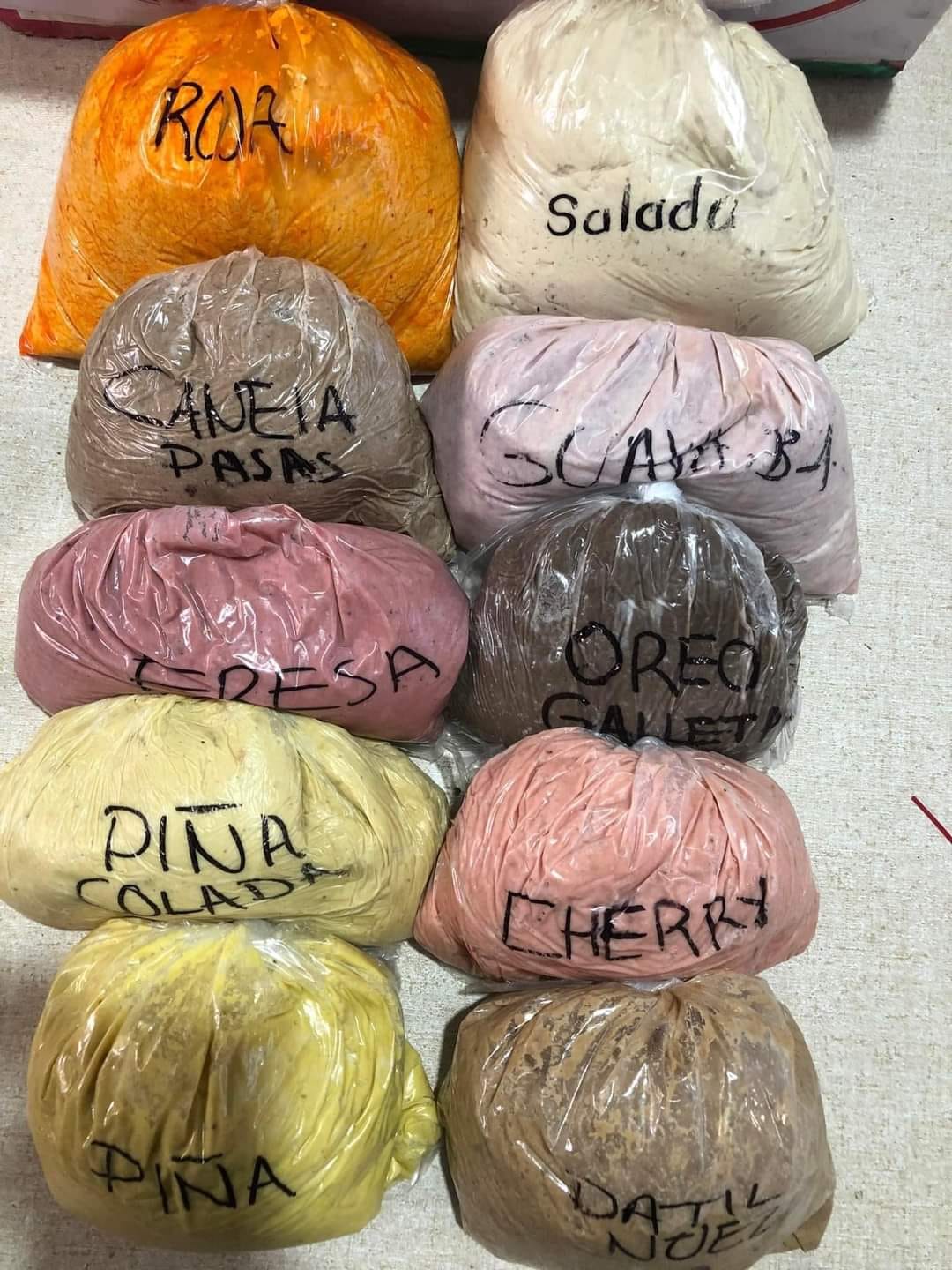 Sabores de guayaba, fresa, piña, nuez, dátil, galleta, Cherry, plátano y piña colada.