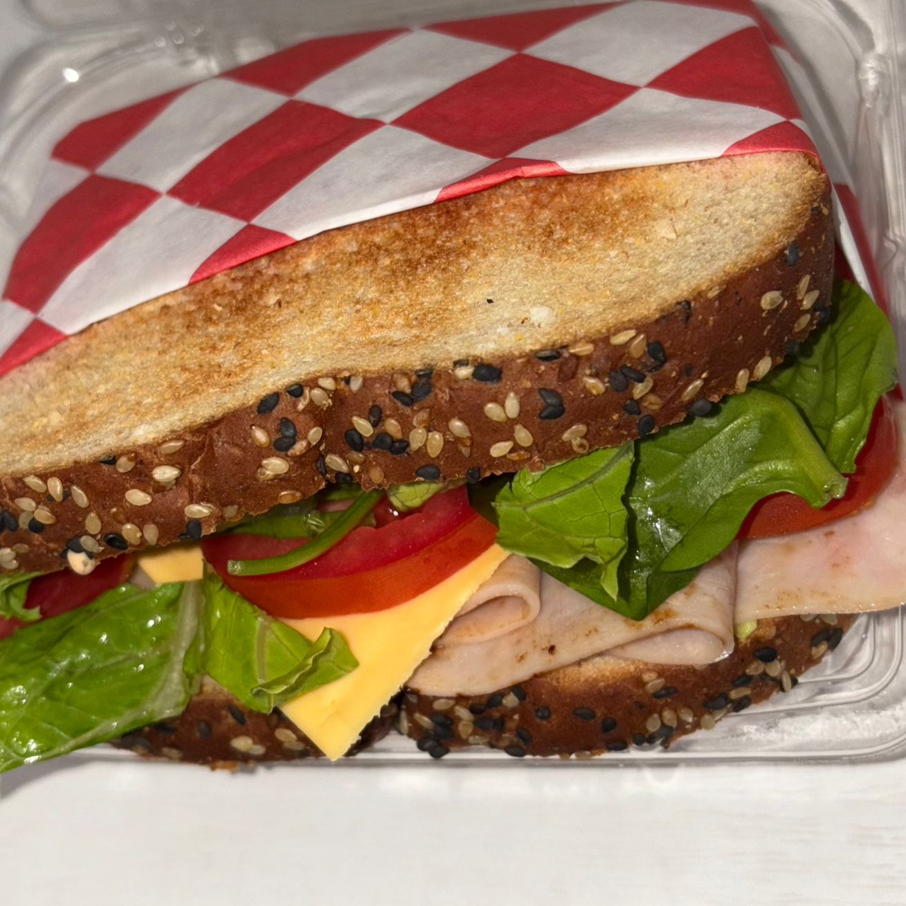 Jamón de pavo, lechuga, tomate, aguacate, espinaca, queso (americano o manchego), aderezo a elegir