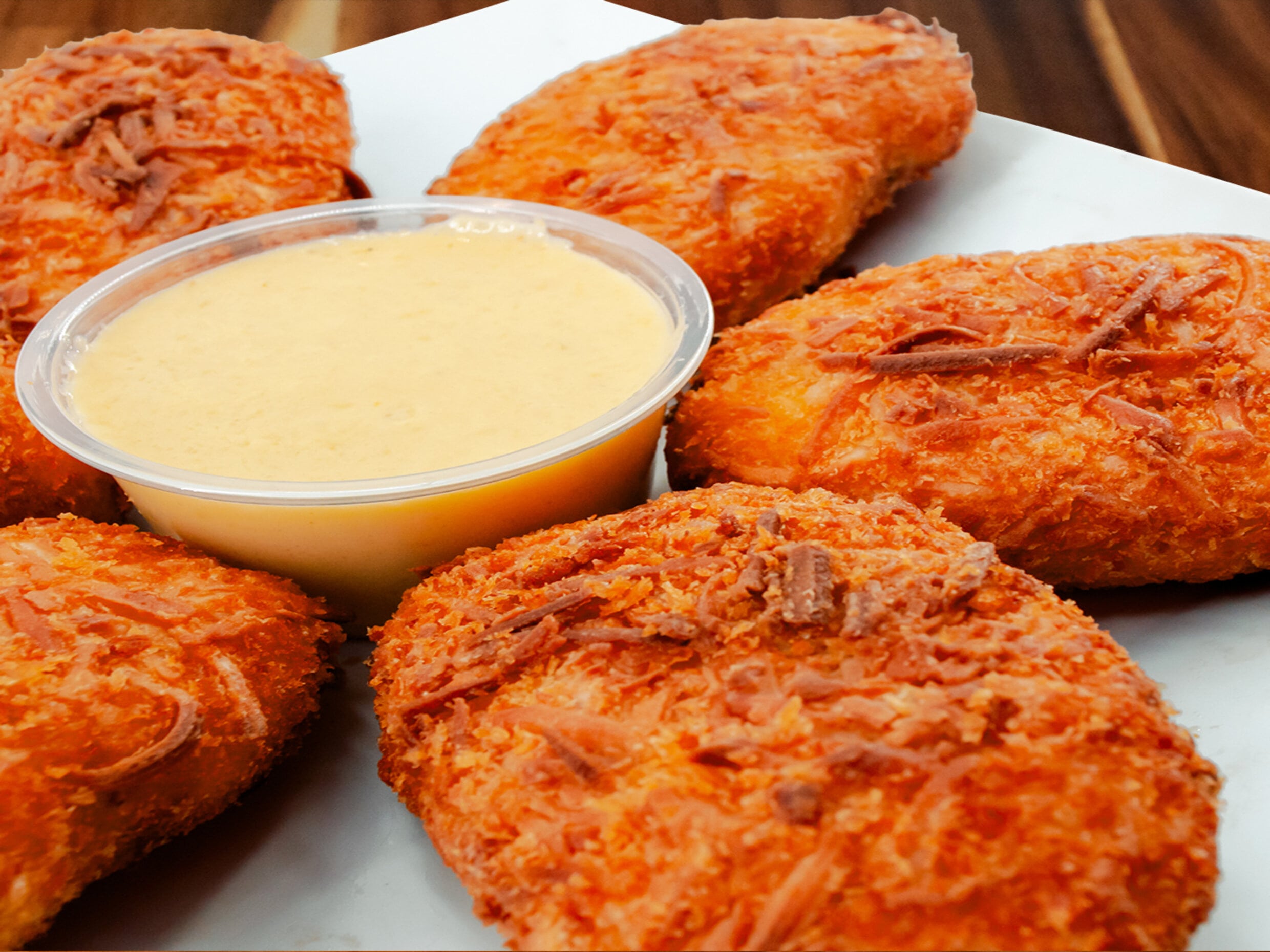 Relleno de camarón forrado de queso americano, manchego y philadelphia.