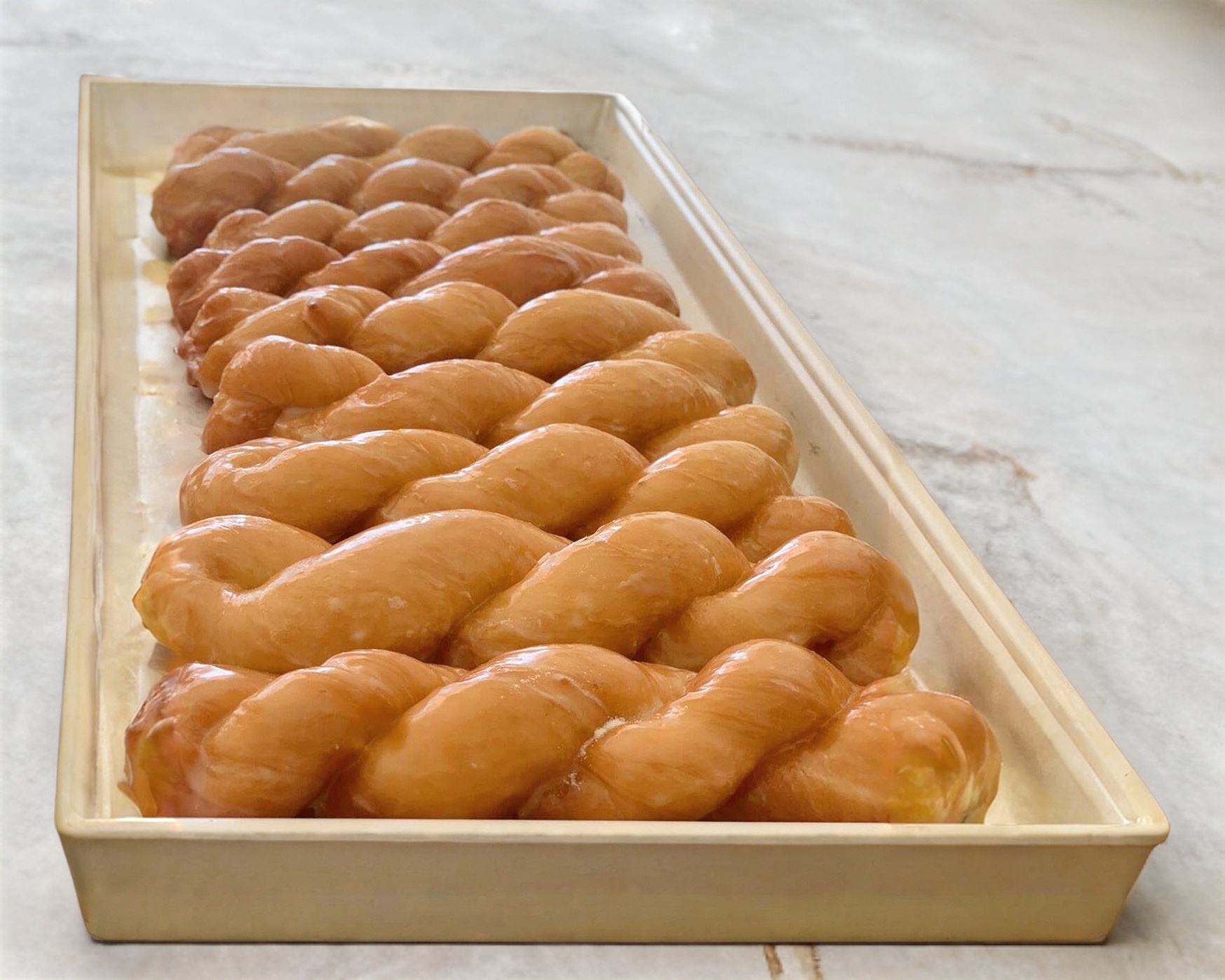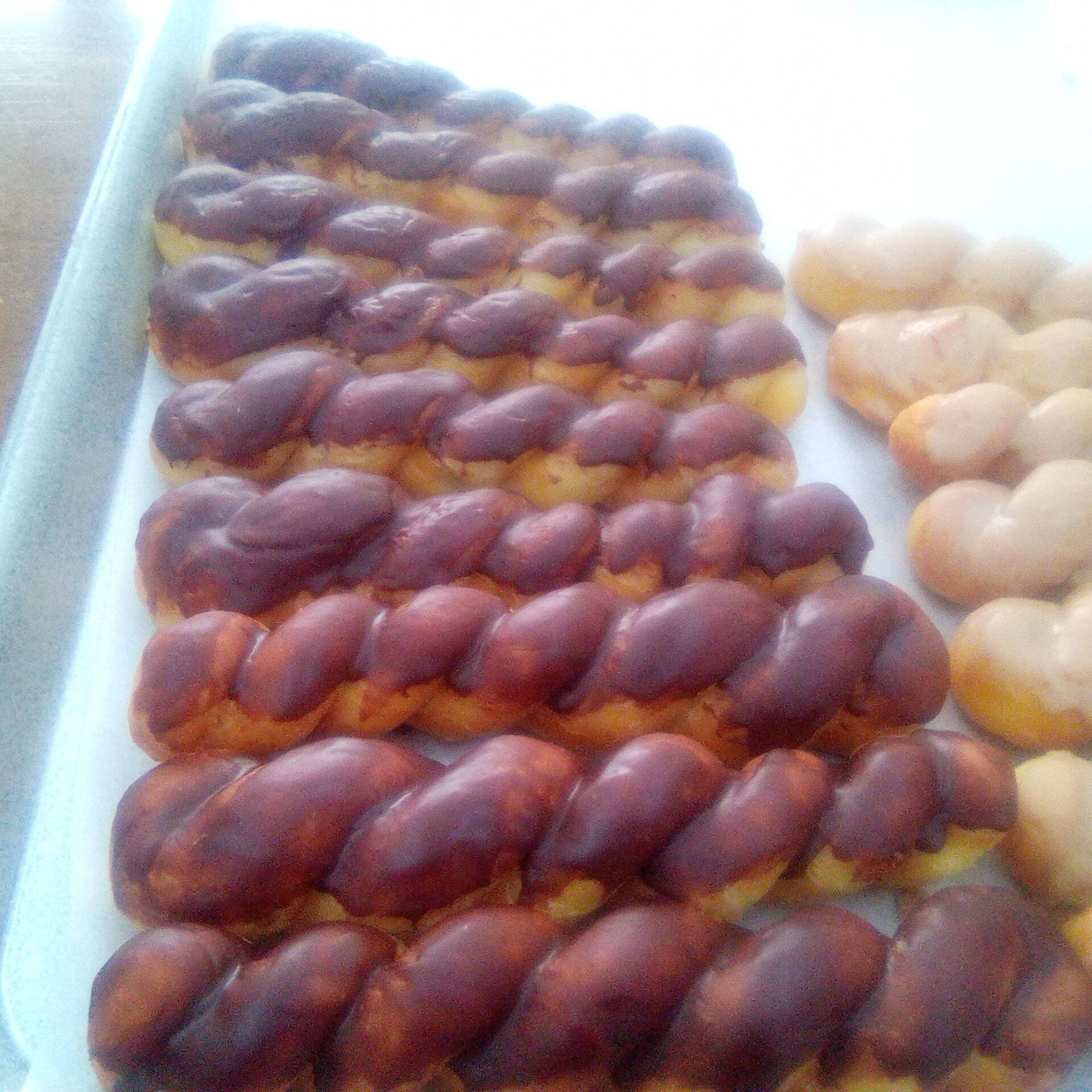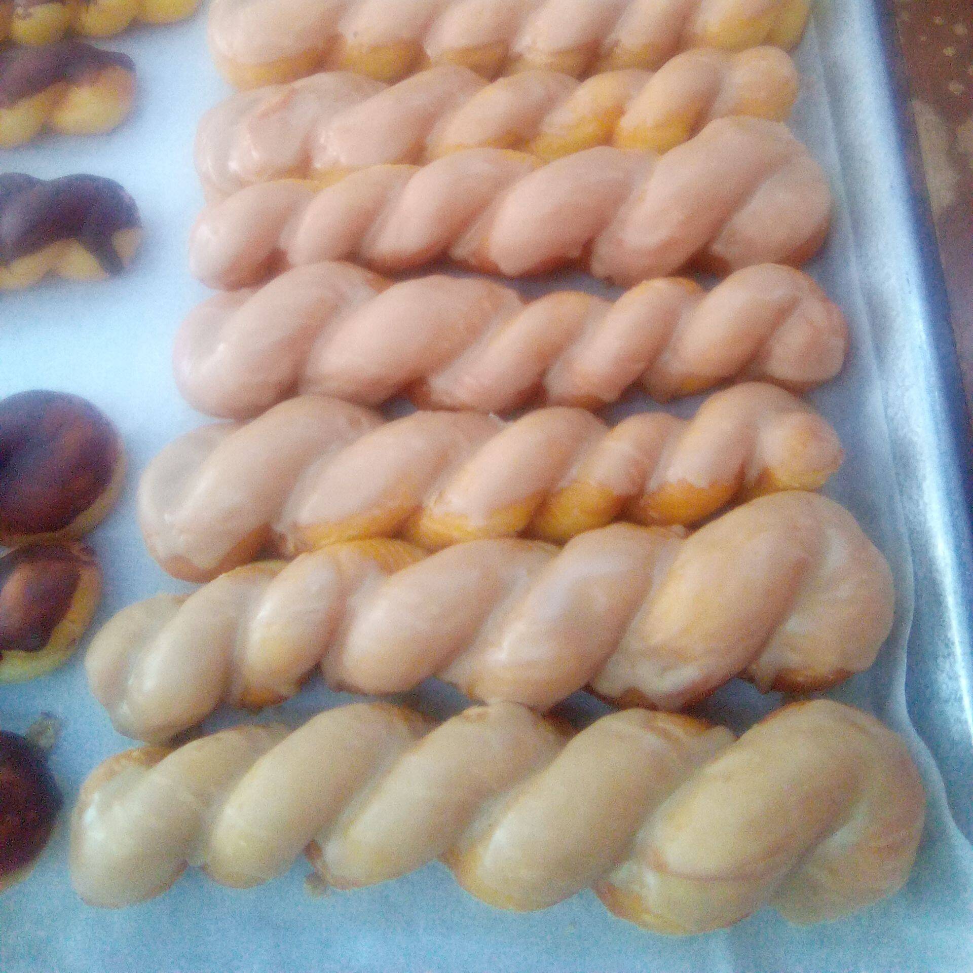 Nuestras famosas trenzas, o "torcidos", a base de harina de dona con cubierta de glaze, 1 pza.