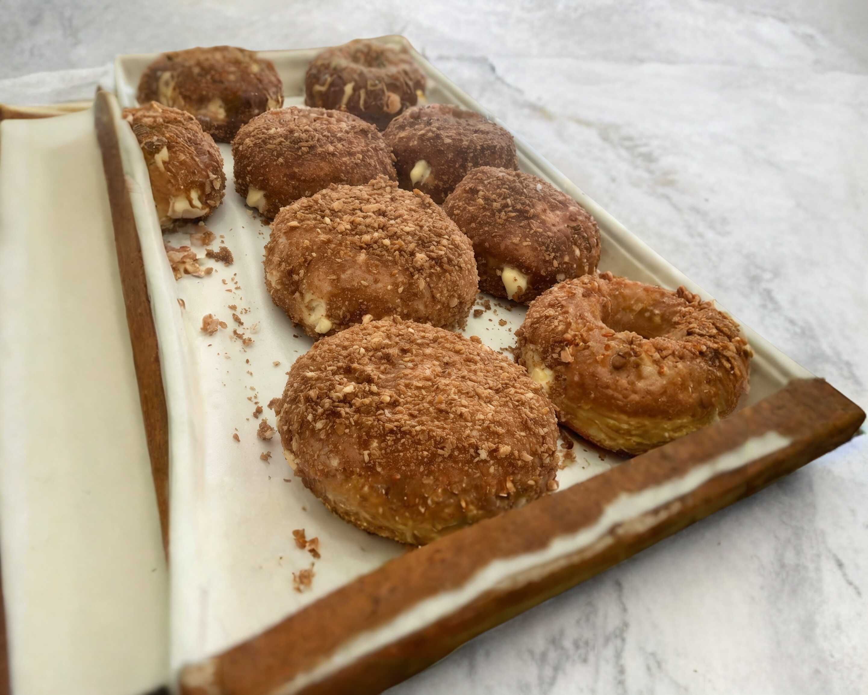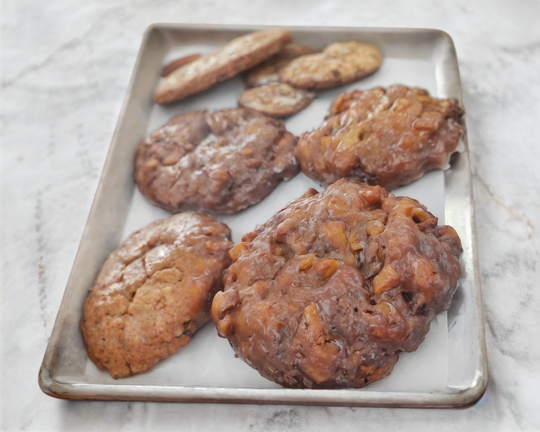 A base de harina de dona, rellena de manzana, glaseada y con un toque de galleta, 1 pza.