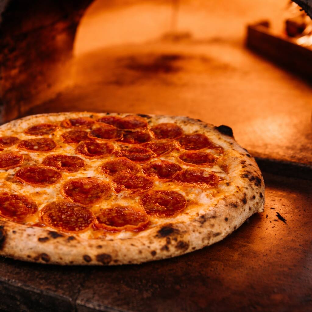 Peperoni italiano ligeramente especiado, mozzarella derretida y masa fermentada al horno para un sabor intenso y crujiente