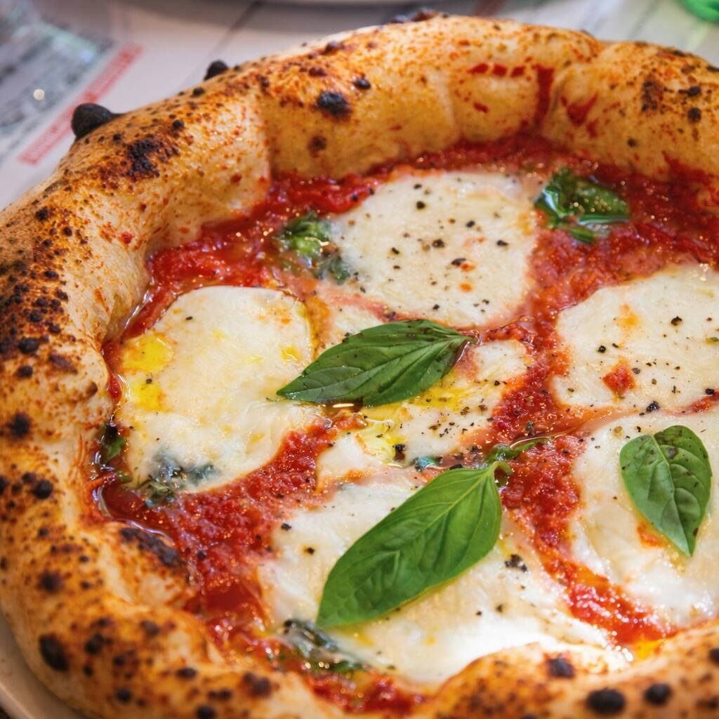Tomate San Marzano, mozzarella fior di latte, albahaca fresca y aceite de oliva extra virgen