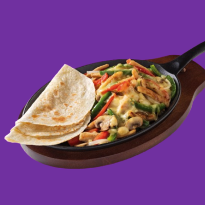 Rellenas de pollo guisado, con nuestra tradicional salsa suiza, gratinadas con queso gouda, cebolla y acompañadas de frijoles refritos.
